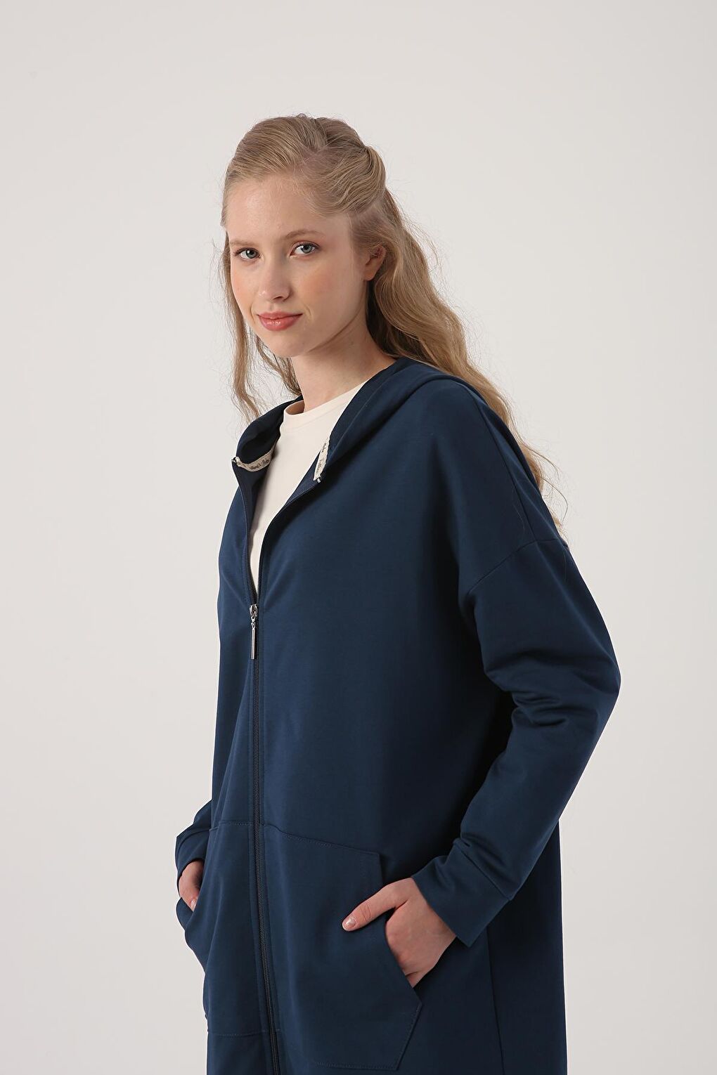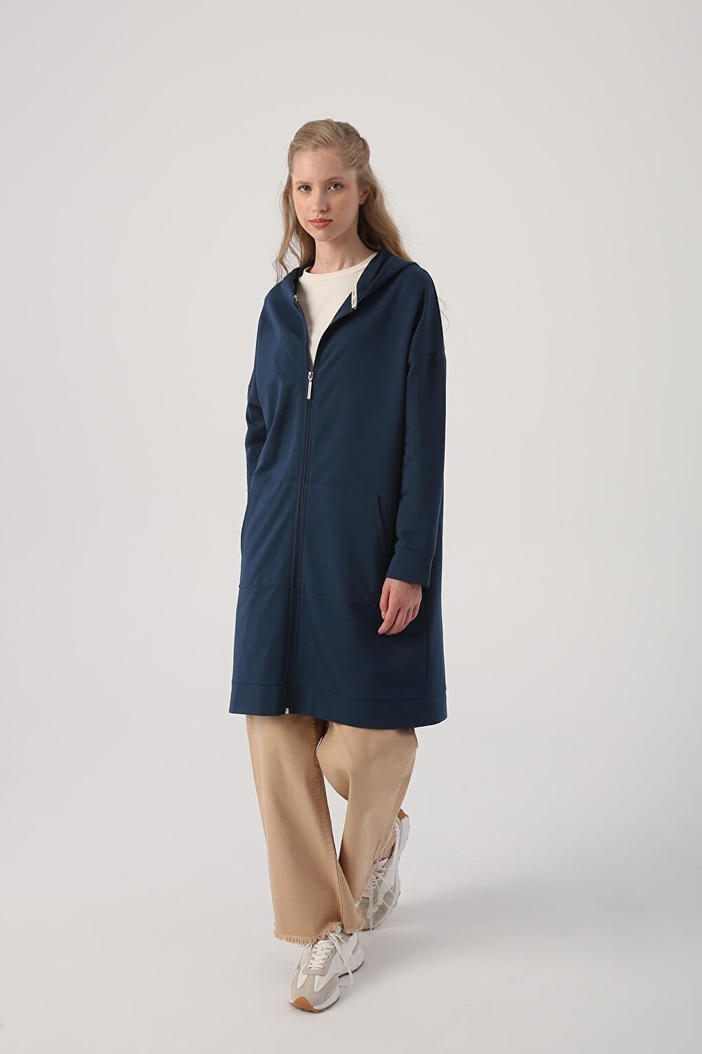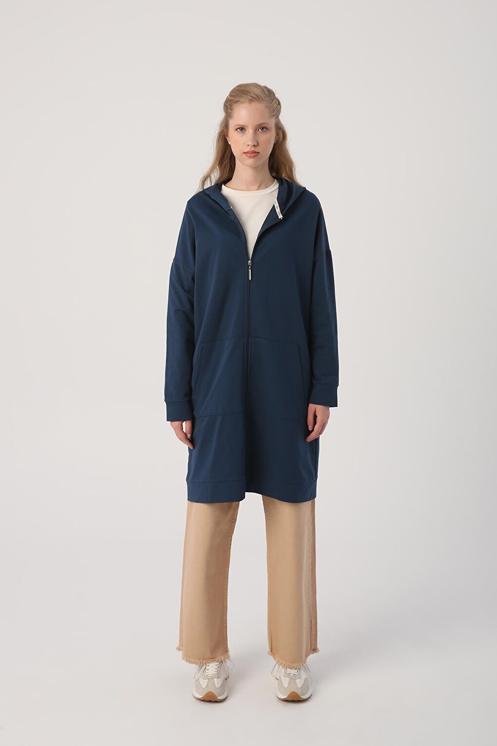 - نام : Koyu İndigo Kapüşonlu Fermuarlı Sweat Hırka