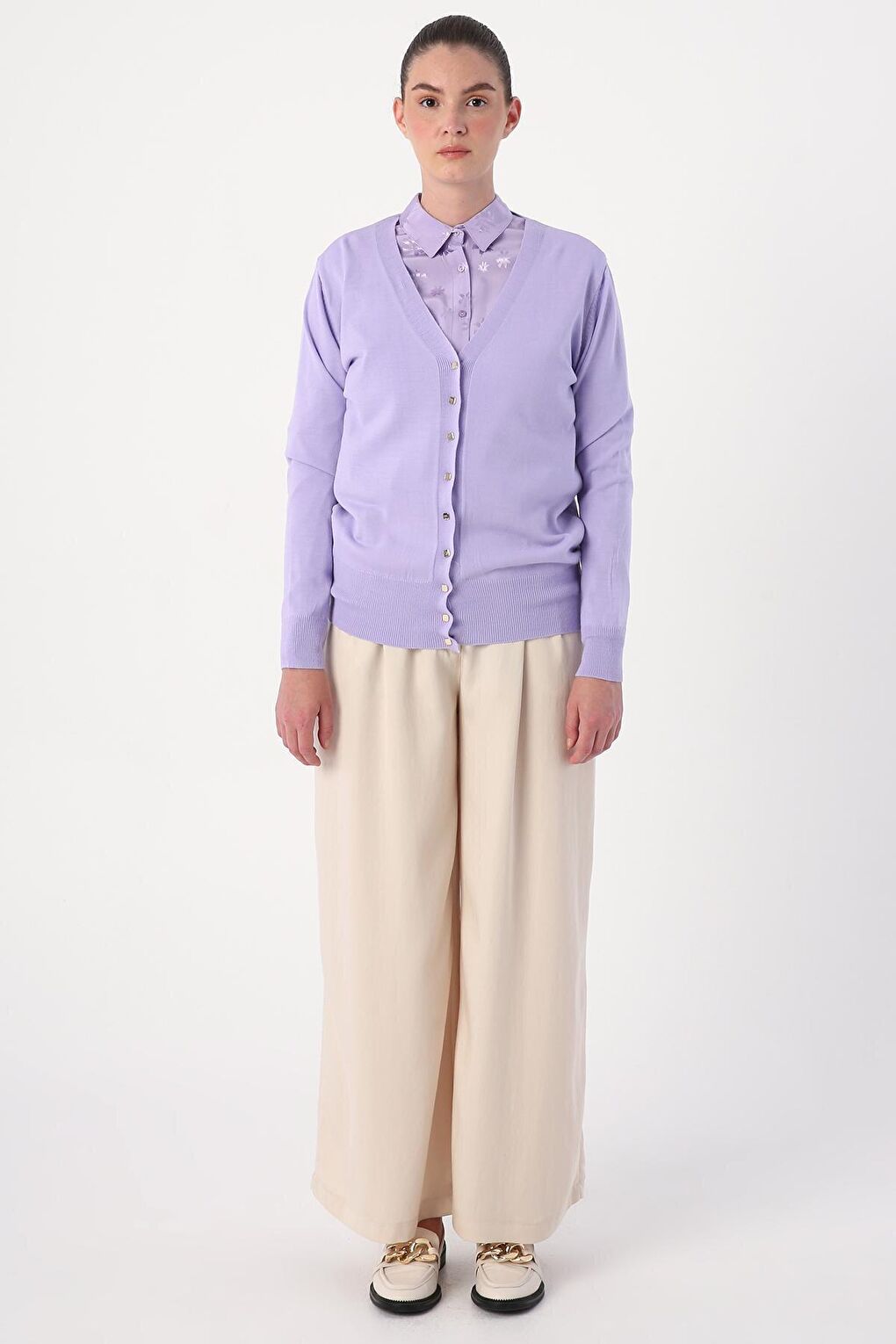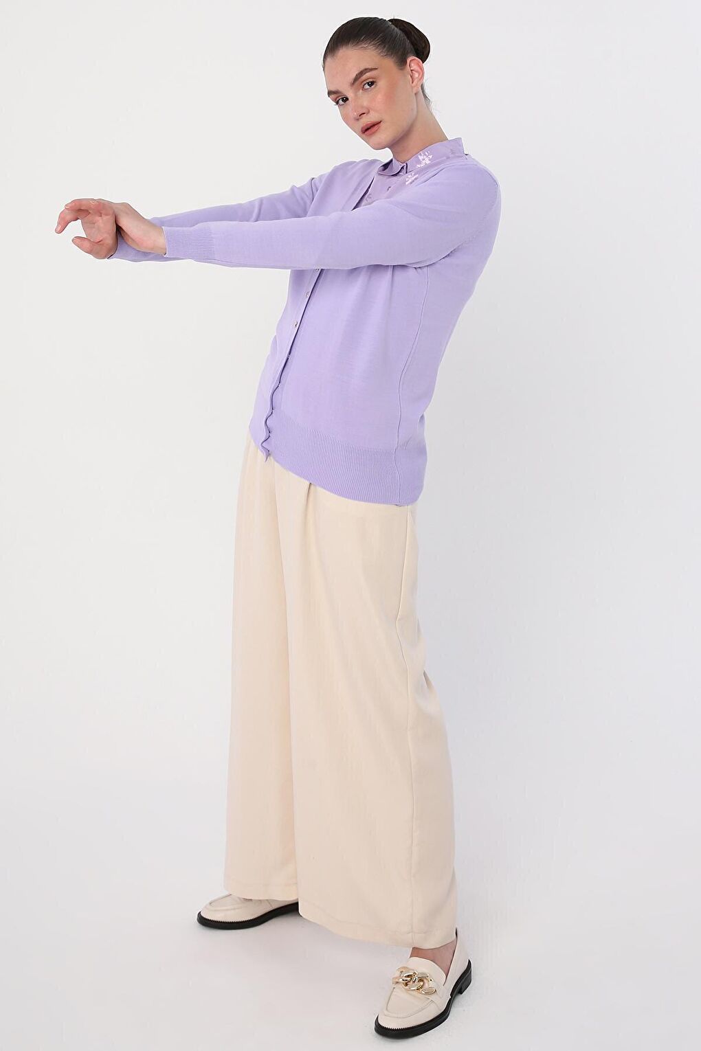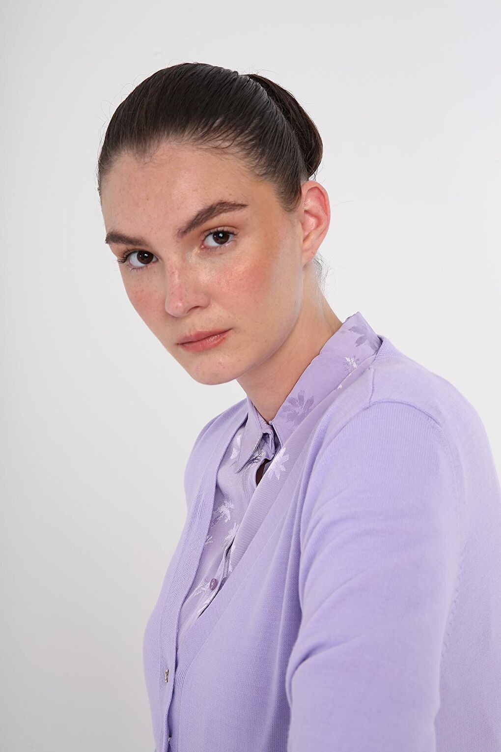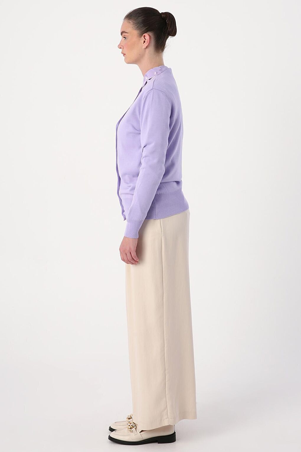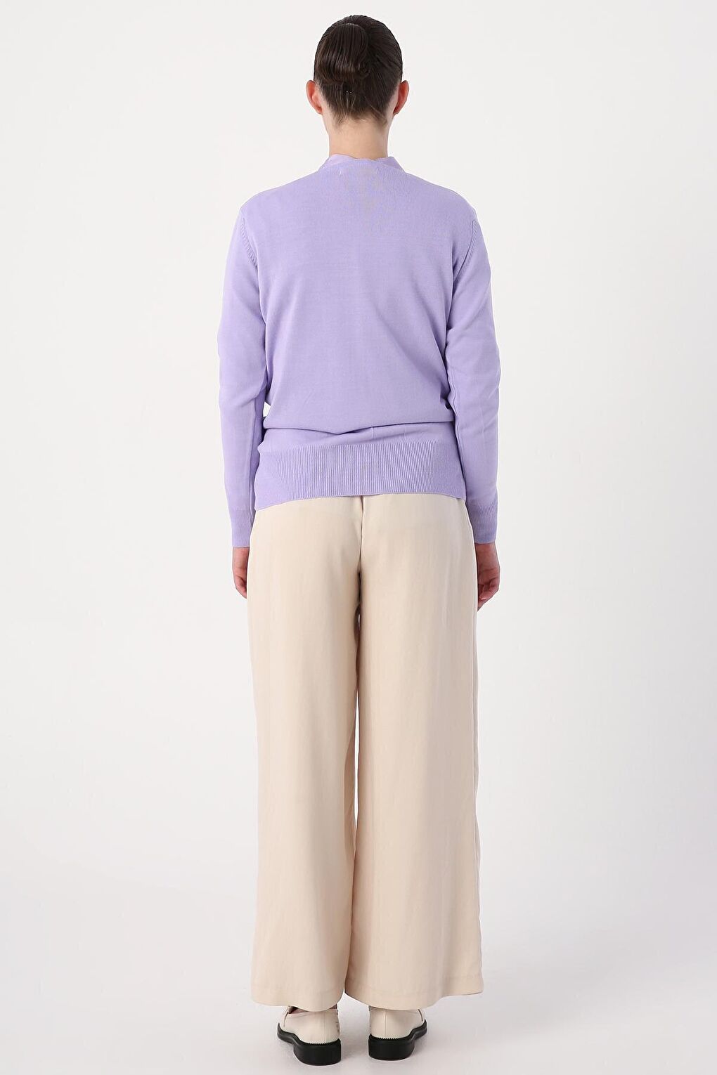 - نام : Açık Lila V Yaka Kısa Triko Hırka