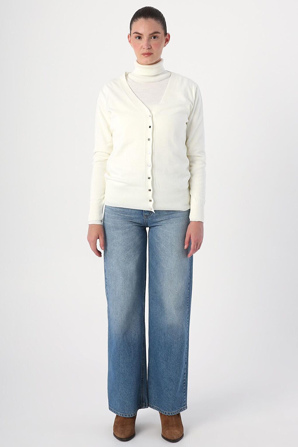 - نام : Ekru V Yaka Kısa Triko Hırka