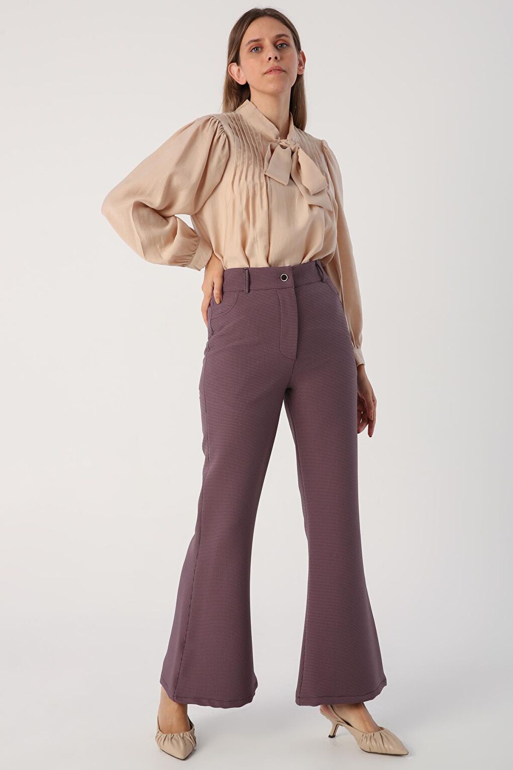 - نام : Açık Gül İspanyol Paça Rahat Pantolon
