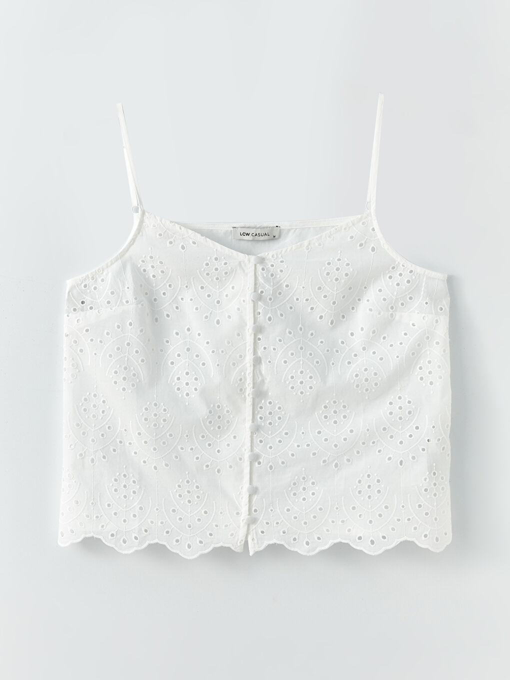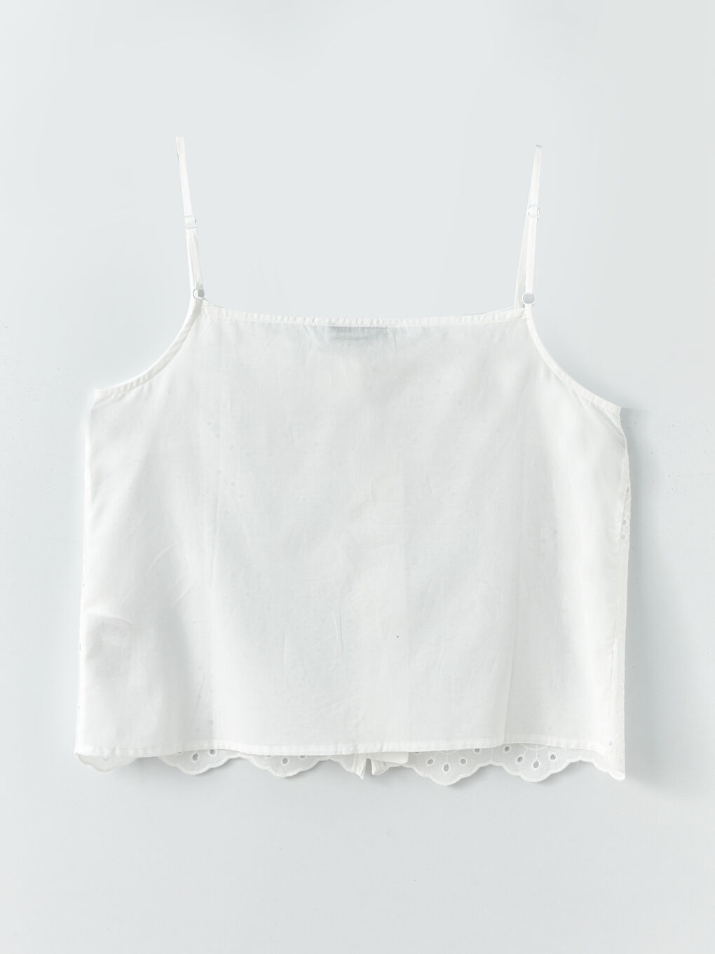 - نام : V Yaka Kendinden Desenli Askılı Crop Kadın Bluz