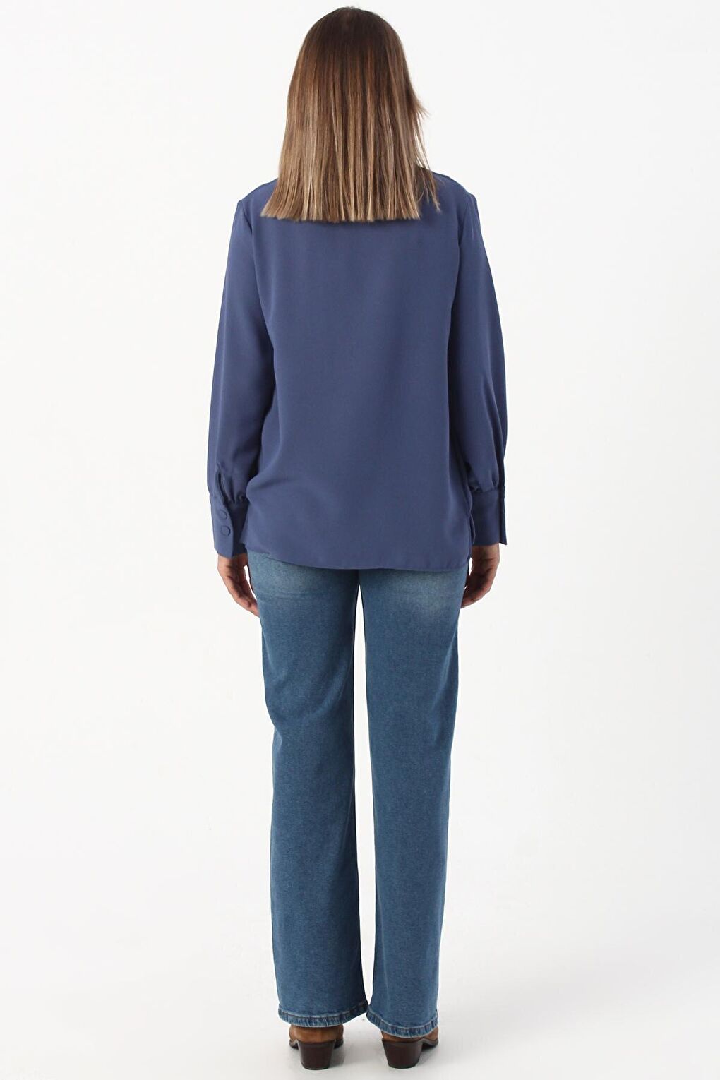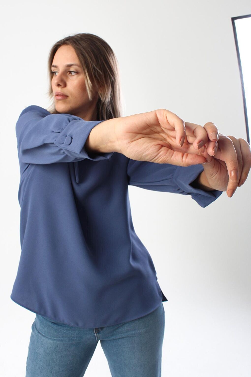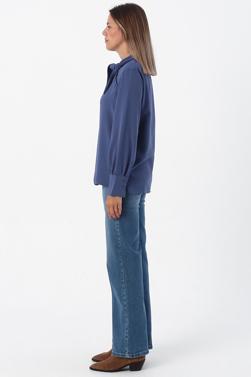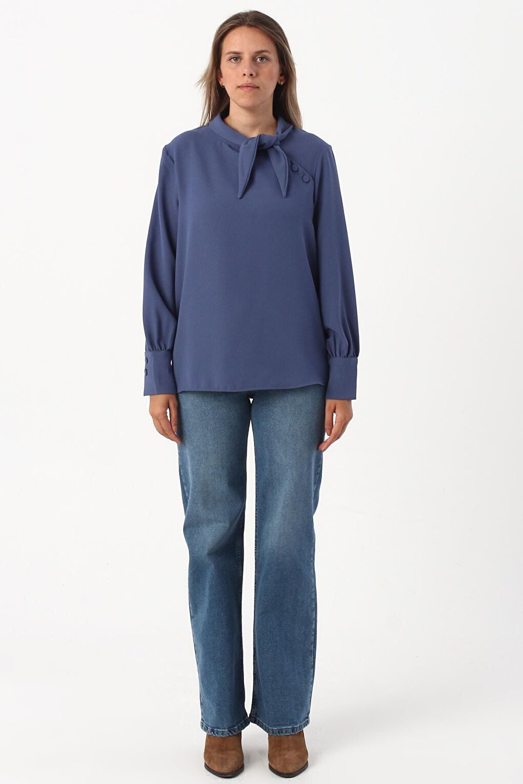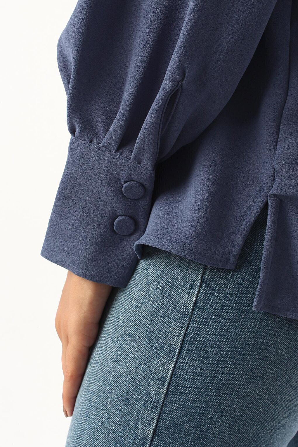 - نام : Mavi Gipeli Fırfırlı Doğal Kumaş Bluz