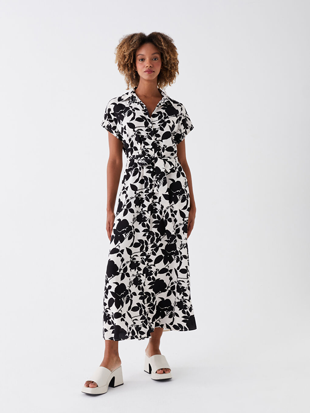 - نام : Gömlek Yaka Desenli Kısa Kollu Kadın Elbise