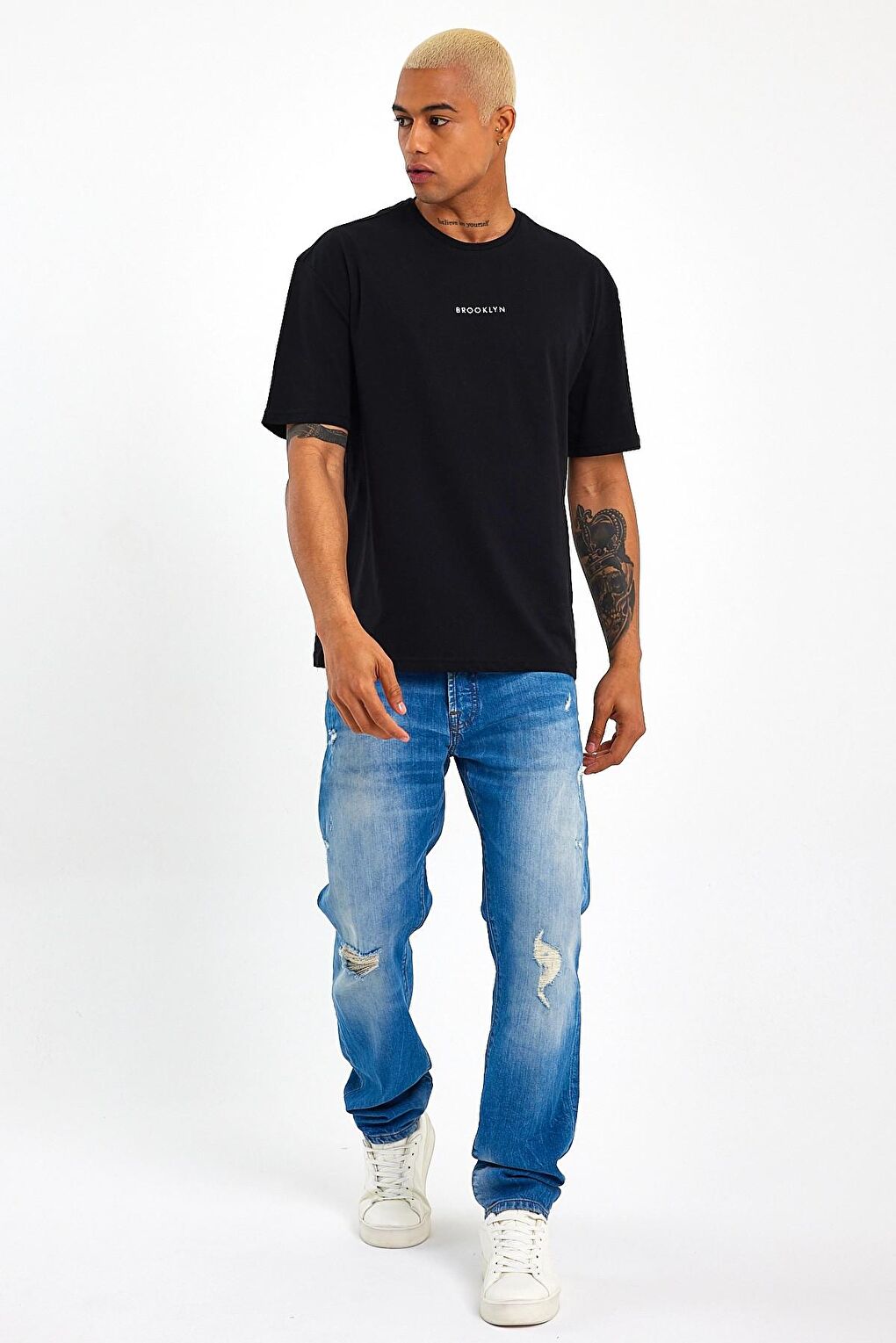 - نام : Erkek Bisiklet Yaka Oversize Fit Brooklyn Baskılı Tişort SPR21Y27