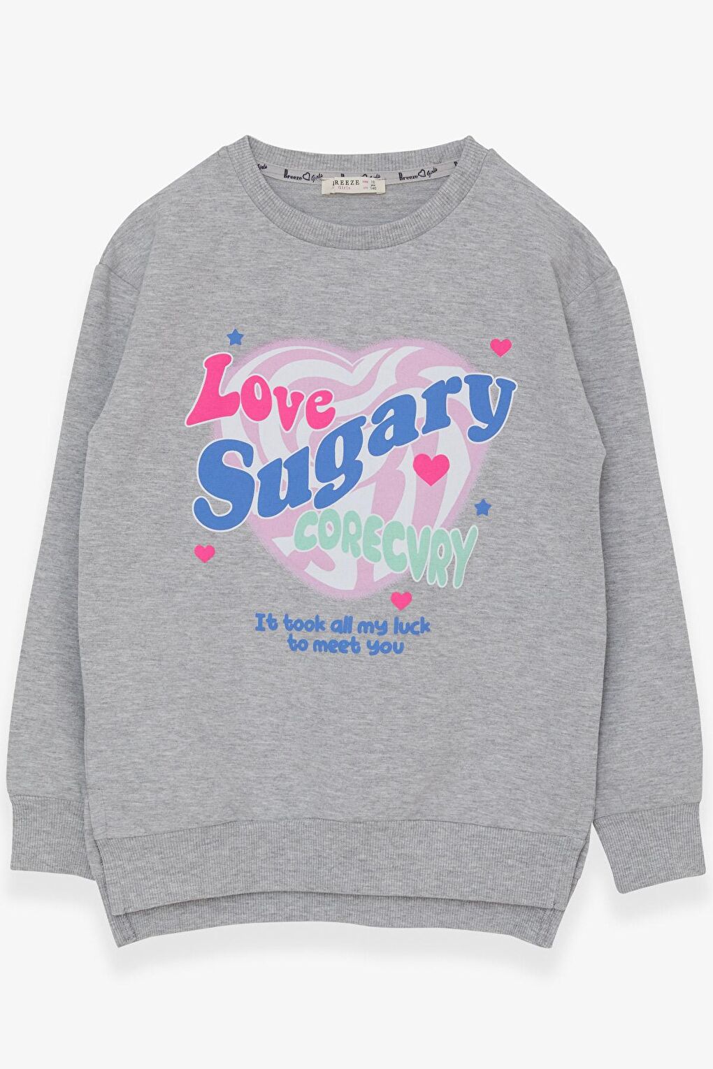 - نام : Kız Çocuk Sweatshirt Yazı Baskılı Yırtmaçlı Açık Gri Melanj (9-14 Yaş)