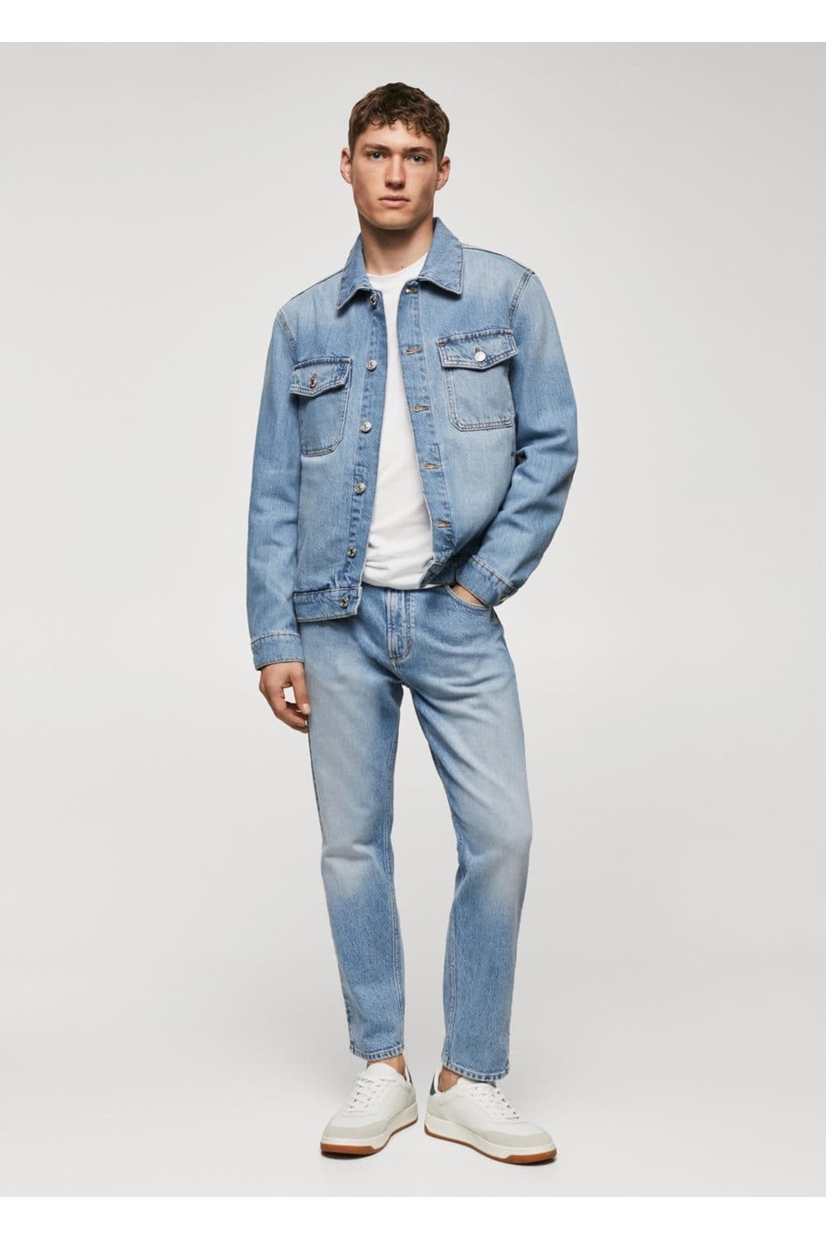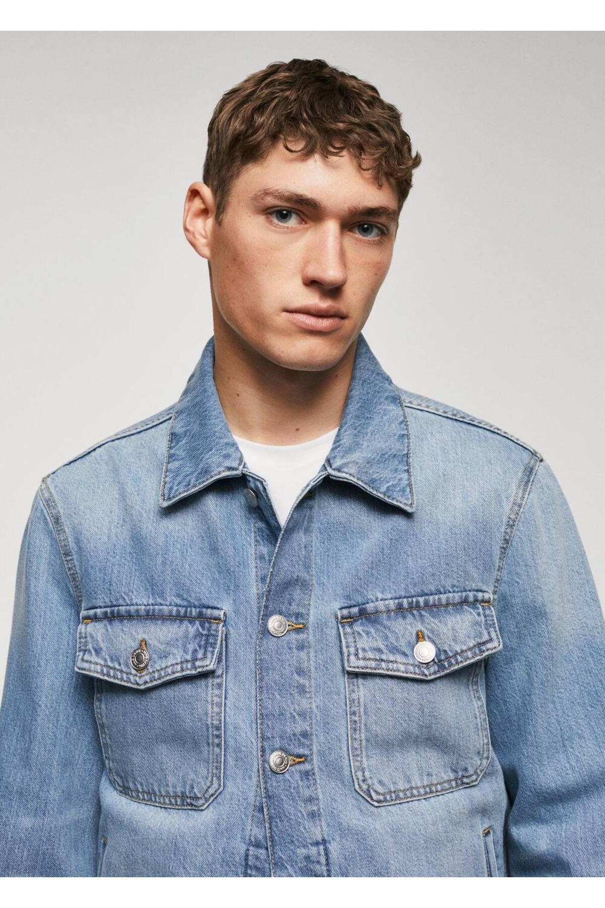خرید اینترنتی کت کاپشن مردانه آبی مانگو 57022521