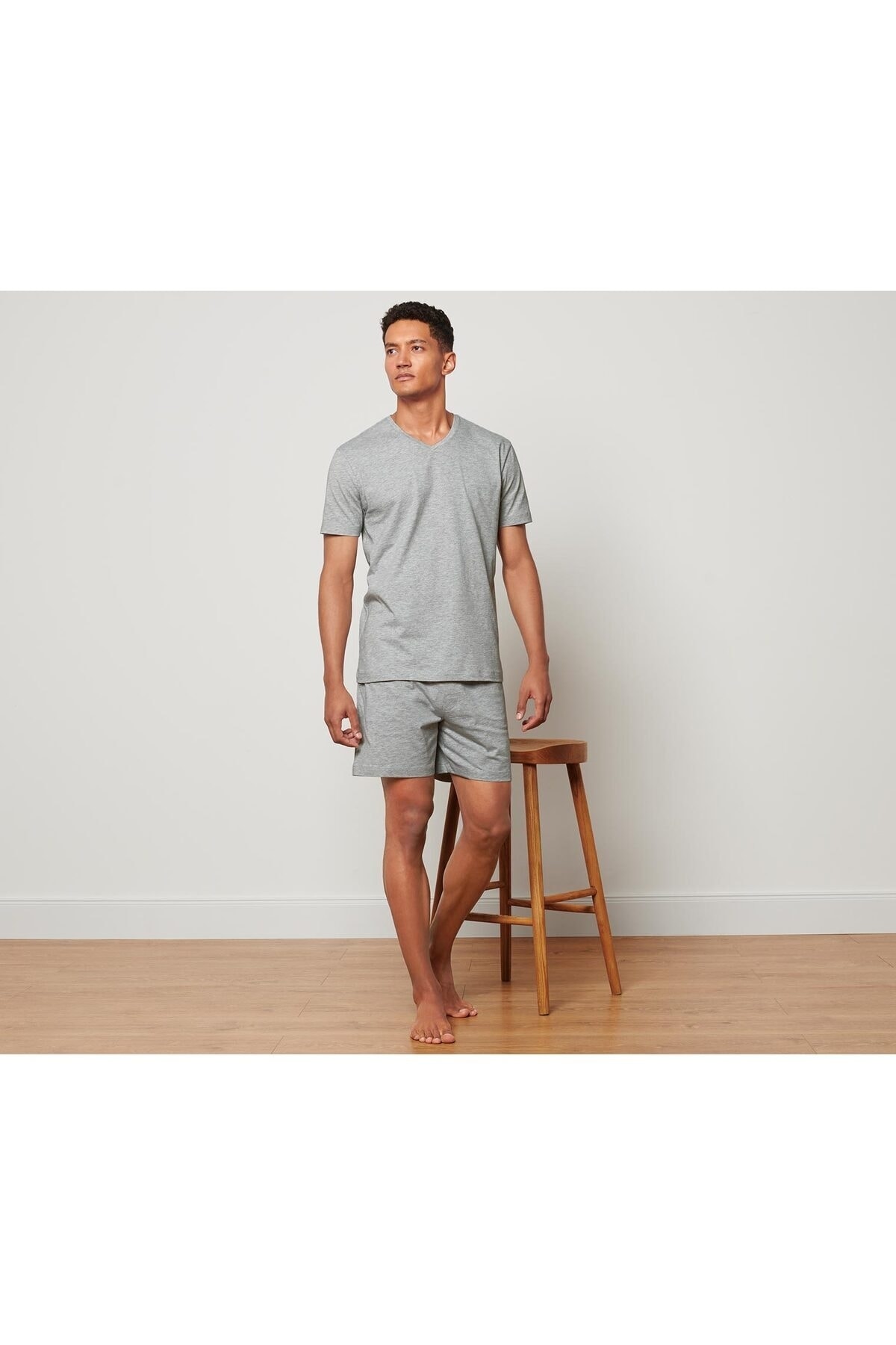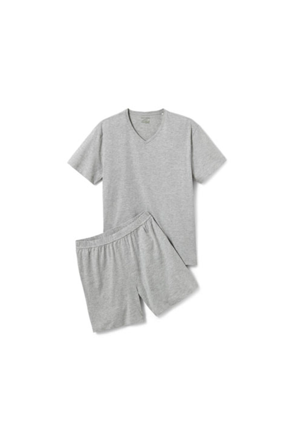Şortlu Pijama Takımı, Gri Kesim: Regular Fit Renk: Kırçıllı gri Malzeme: %95 pamuklu (Afrika'da pamuk üretimi girişimini destekler), %5 viskoz Ölçüler: Pijama üstü toplam uzunluğu yakl. 77 cmAlt kısmın iç bacak uzunluğu yakl. 16 cm (L 52/54) Yumuşak Single Jersey kumaş kalitesi|V yakalı pijama üstü |Esnek lastikli bel bandı ve yan cepli pijama altı |Pamuk karışımlı kumaş|Afrika'da pamuk üretimi girişimini destekler|Bu pijama takımı çiftçileri destekliyor.