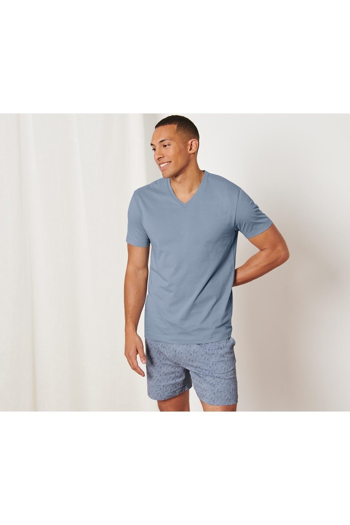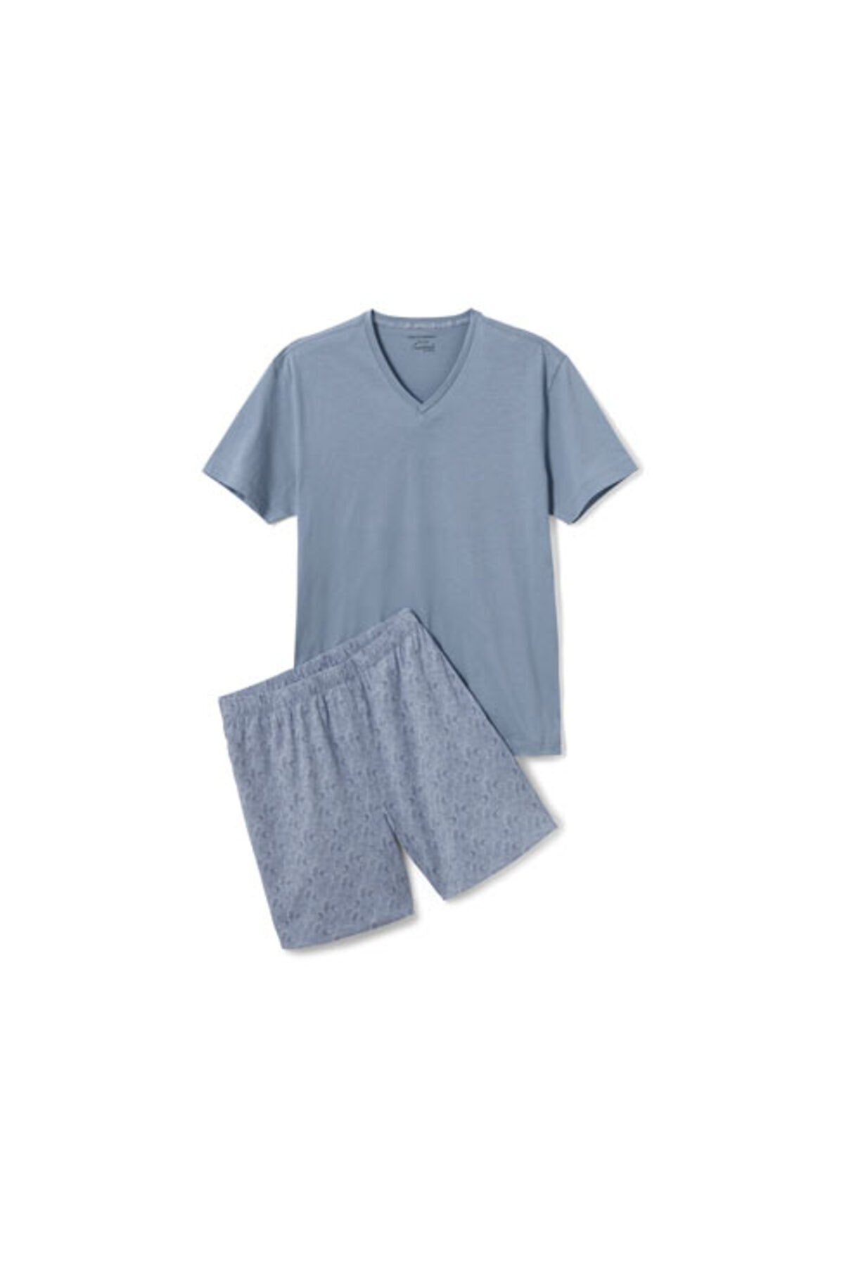 Şortlu Pijama Takımı, Tamamı Baskılı Kesim: Regular Fit Renk: Pijama üstü maviPijama altı mavi-açık mavi tamamı baskılı Malzeme: %100 pamuklu Ölçüler: Pijama üstü toplam uzunluğu yakl. 77 cmŞort iç bacak uzunluğu yakl. 16 cm (L 52/54) Saf pamuklu|5XL bedene kadar online sipariş|V yakalı pijama üstü|Elastik bel bantlı ve yan cepli pijama altı |Afrika'da pamuk üretimi girişimini destekler|Bu pijama takımı çiftçileri destekliyor.