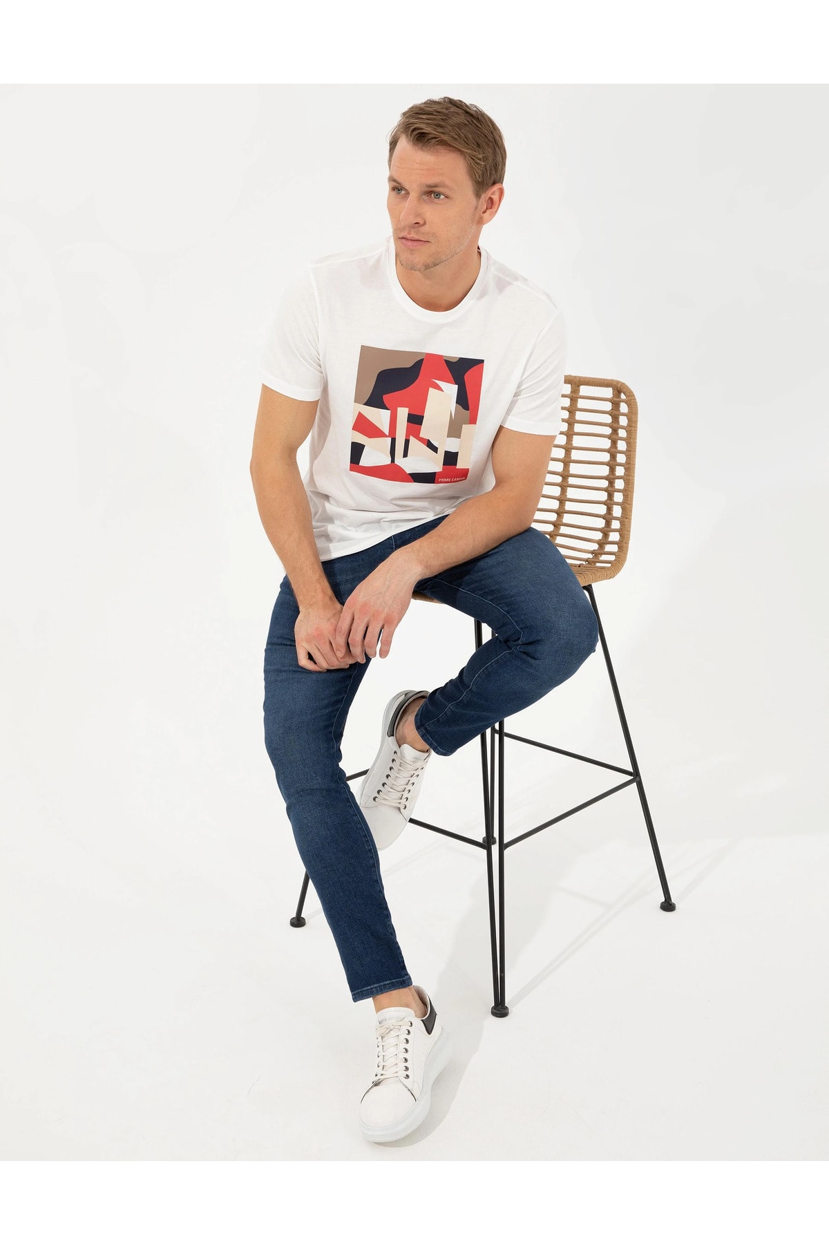 - نام : Ekru Slim Fit Baskılı Bisiklet Yaka Erkek Tişört