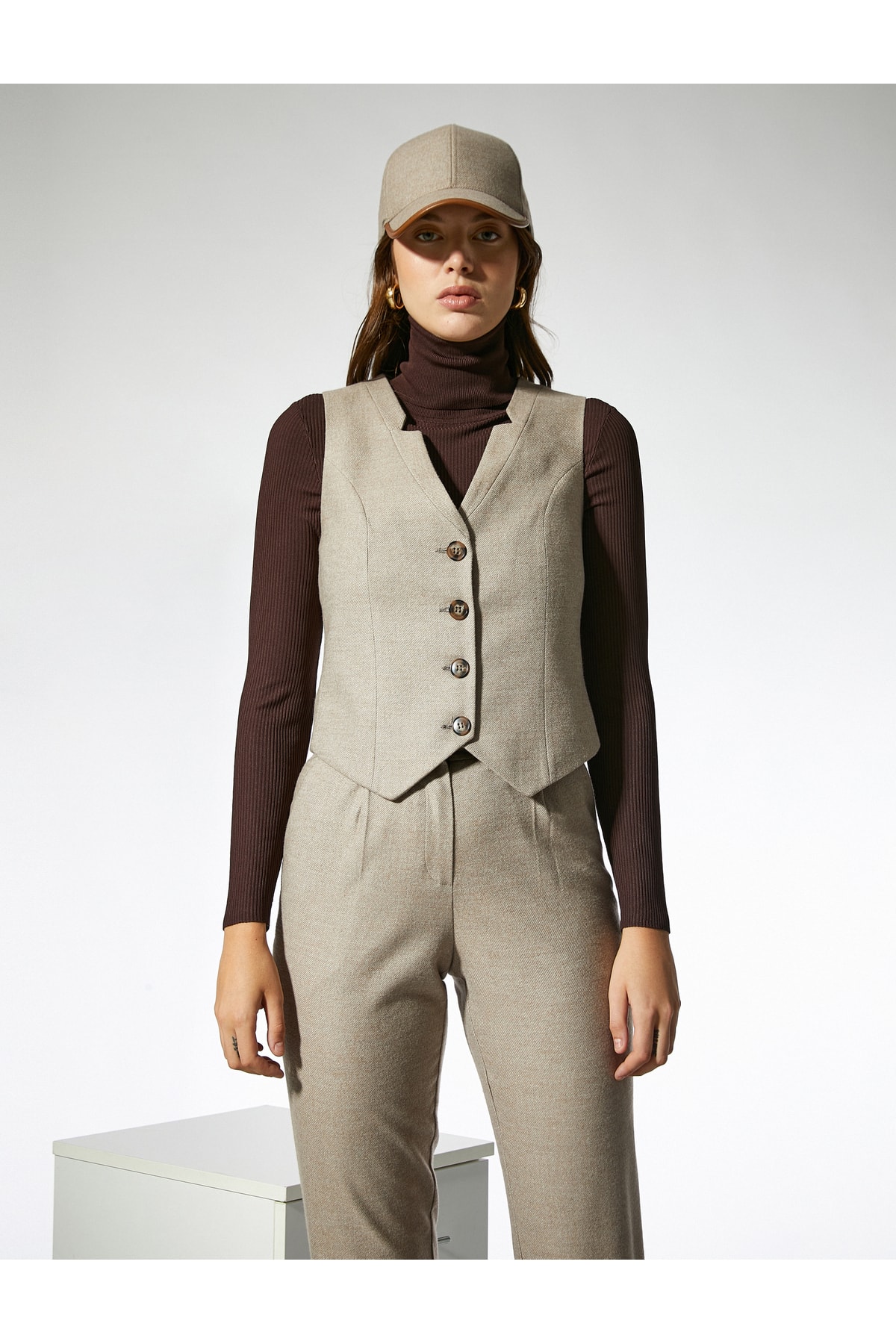 - نام : Ayşegül Afacan X Koton - Yaka Detaylı Düğmeli Crop Yelek