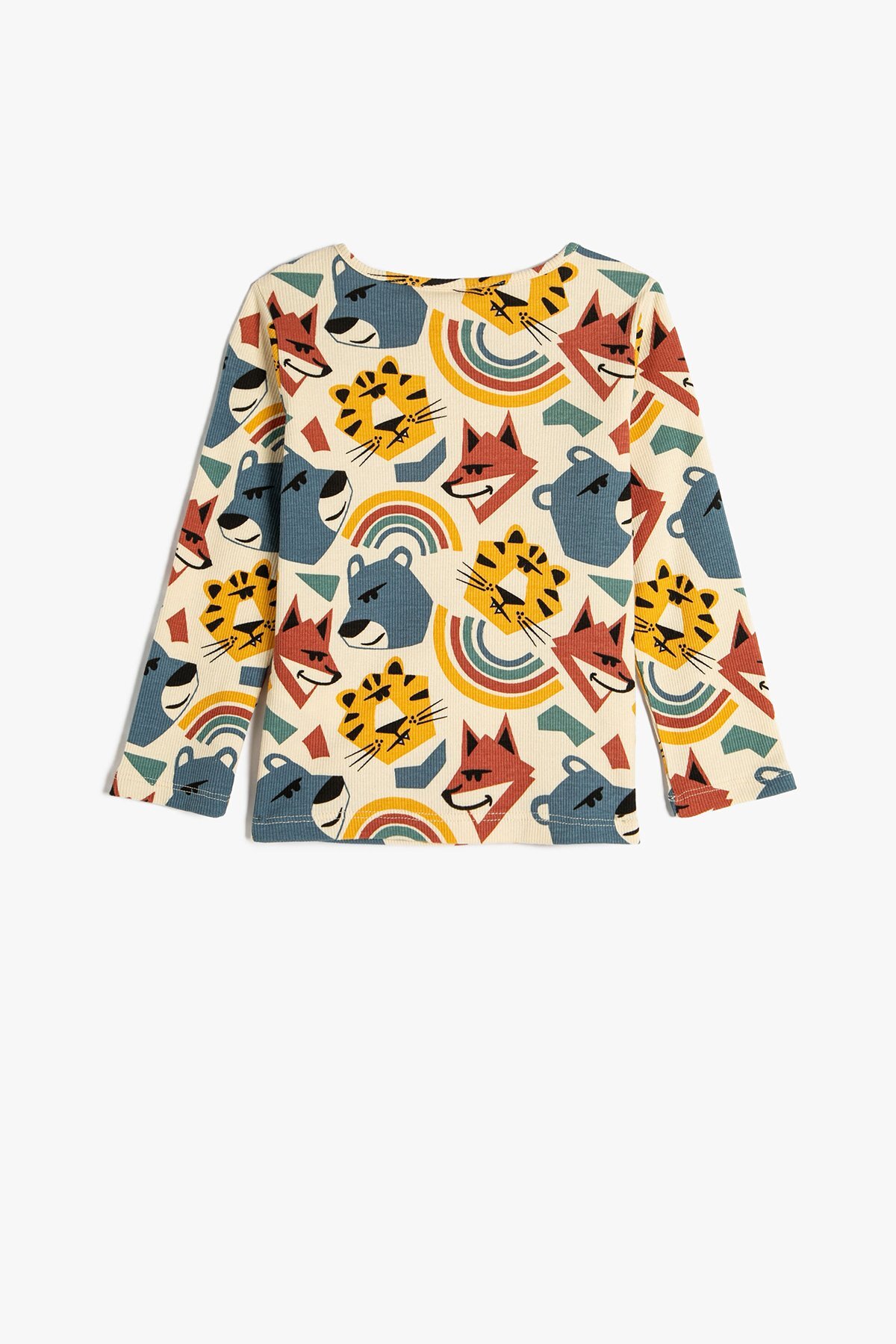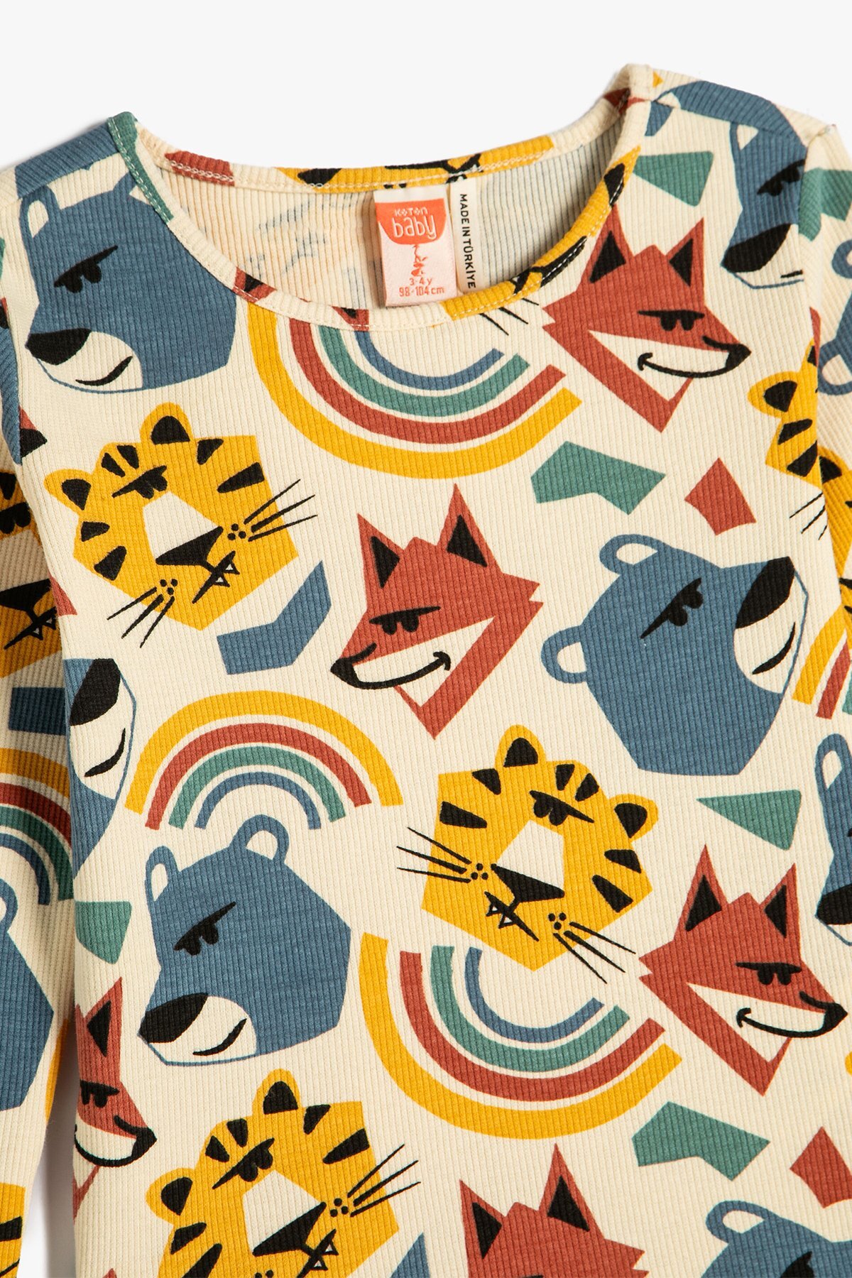 - نام : Erkek Bebek Uzun Kollu Bisiklet Yaka Kaşkorse Hayvanlar Baskılı Tişört 4WMB10202TK