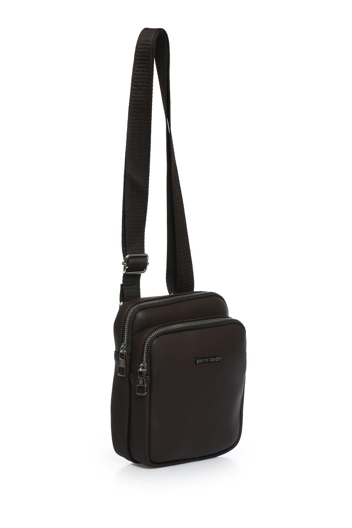 خرید اینترنتی کیف رو دوشی مردانه قهوه ای پیر کاردین 01PC001140
