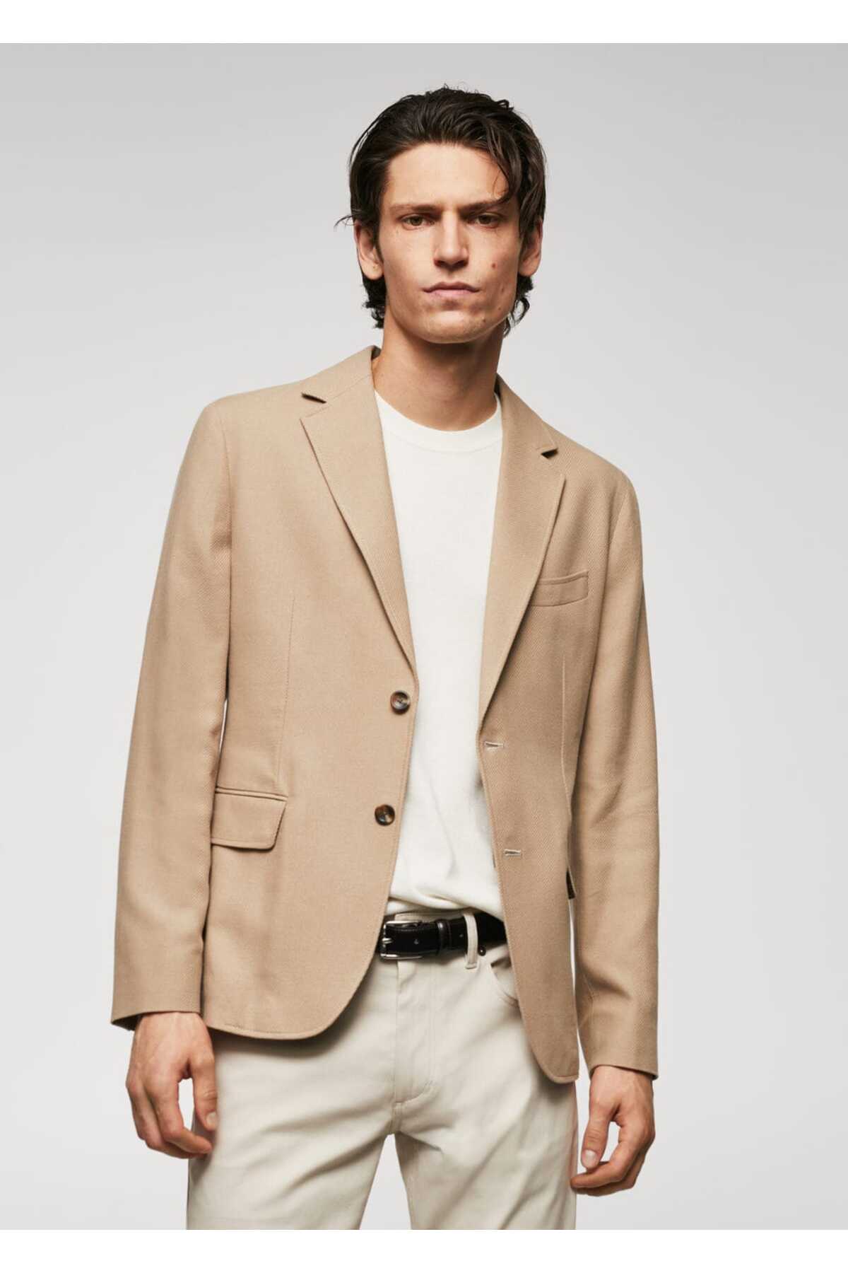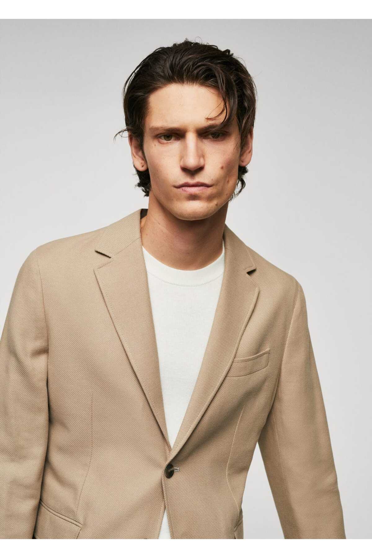 خرید اینترنتی کت تک مردانه بژ مانگو 57044760