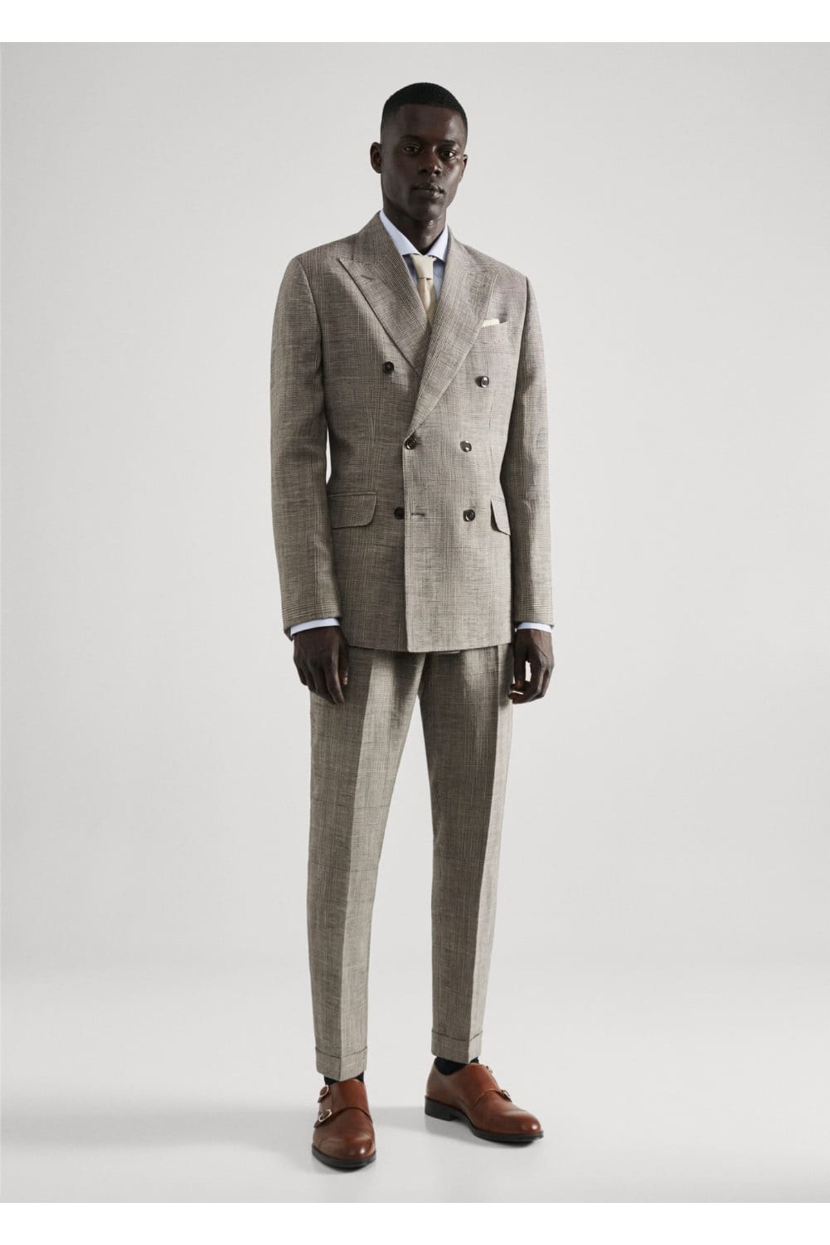 Blazer ceket .-- siena. Dar kesim, Keten karışımlı kumaş, Standart tasarım, Glen ekoseli desen, Erkek yakalı, Çapraz düğmeli ön kapama, Uzun kollu ve manşetleri düğmeli, Göğsü yama cepli, Ön tarafta iki adet klapalı cep, Duble yırtmaçlı model, Düz paça, İç cepli, Astarlı, Modelin boyu 190 cm'dir ve 50 beden giymektedir, Takım elbise koleksiyonu, Slim Fit, Normal Fit'e göre vicuda biras daha oturuyor. Klasik kesim sevenler için ideal, silüeti çok fazla öne çıkarmıyor. Slim Fit farklı modellerde mevcut: kruvaze, keten, yün ve klasik. Daha casual bir hava katmak istiyorsanız onu kazak, tişört veya en özel günler için klasik bir gömlek ve kravat ile kombinleyin. 65% viskoz,35% keten, Astar: 52% viskoz,48% polyester, Kol astari: 70% viskoz,30% polyester. YIKANMAZ, ÇAMAŞIR SUYU KULLANMAYIN, MAKS. 110°C İLE ÜTÜLEYİN, PERKLOROETİLEN KURU TEMİZLEME UYGULAYIN, KURUTMA MAKİNESİNDE KURUTULAMAZ