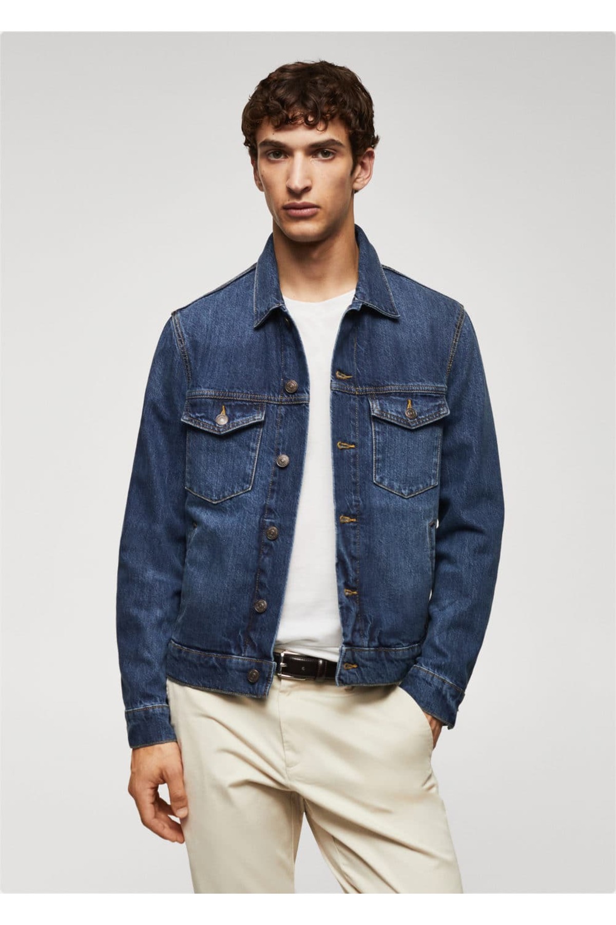 خرید اینترنتی کت کاپشن مردانه آبی مانگو 57022522