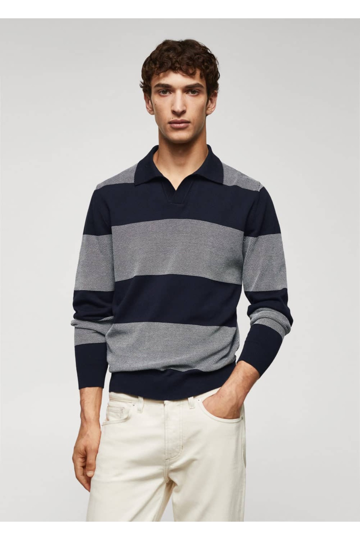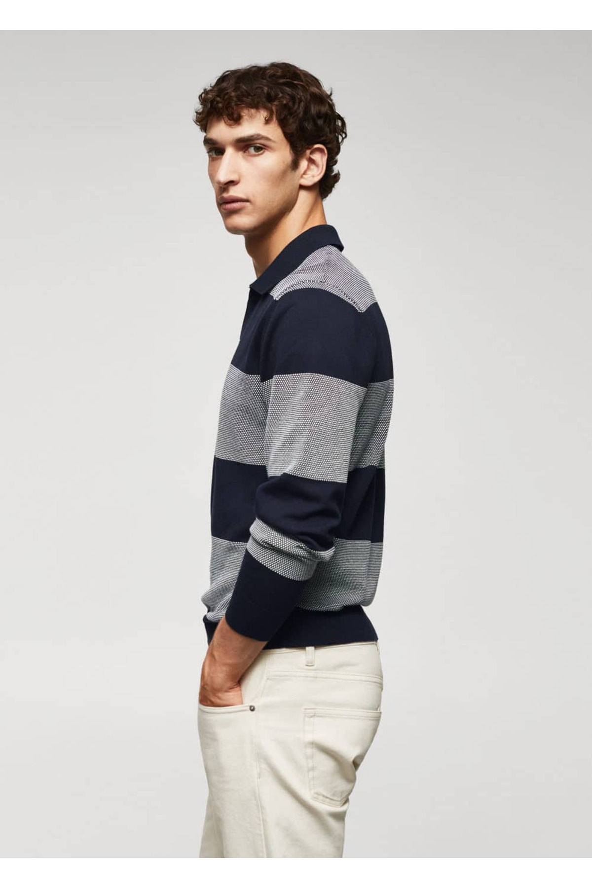 Polo yaka ti?şört .-- fausto. Koton kumaş, İnce örgülü kumaş, Regular kesim, Yatay çizgi desenli, Kapamasız V yaka polo , Uzun kollu, Yaka, kol ve alt kısımda çizgi dokuma bitişleri, Modelin boyu 190 cm'dir ve M beden giymektedir. 85% pamuk,15% polyamid. Arka uzunluk 71.0 cm. ELDE MAKS. 30°C'DE YIKAYIN, ÇAMAŞIR SUYU KULLANMAYIN, MAKS. 110°C İLE ÜTÜLEYİN, KURU TEMİZLEME YAPILMAZ, KURUTMA MAKİNESİNDE KURUTULAMAZ