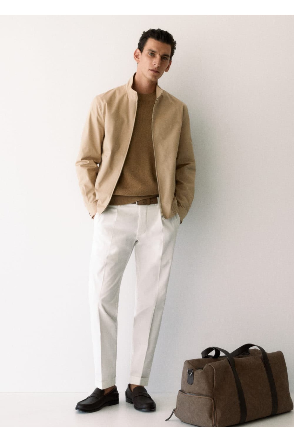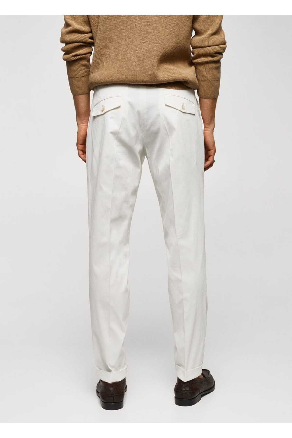 خرید اینترنتی شلوار رسمی مردانه سفید مانگو 57044387
