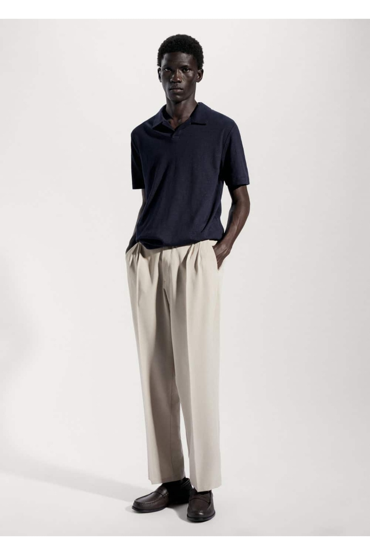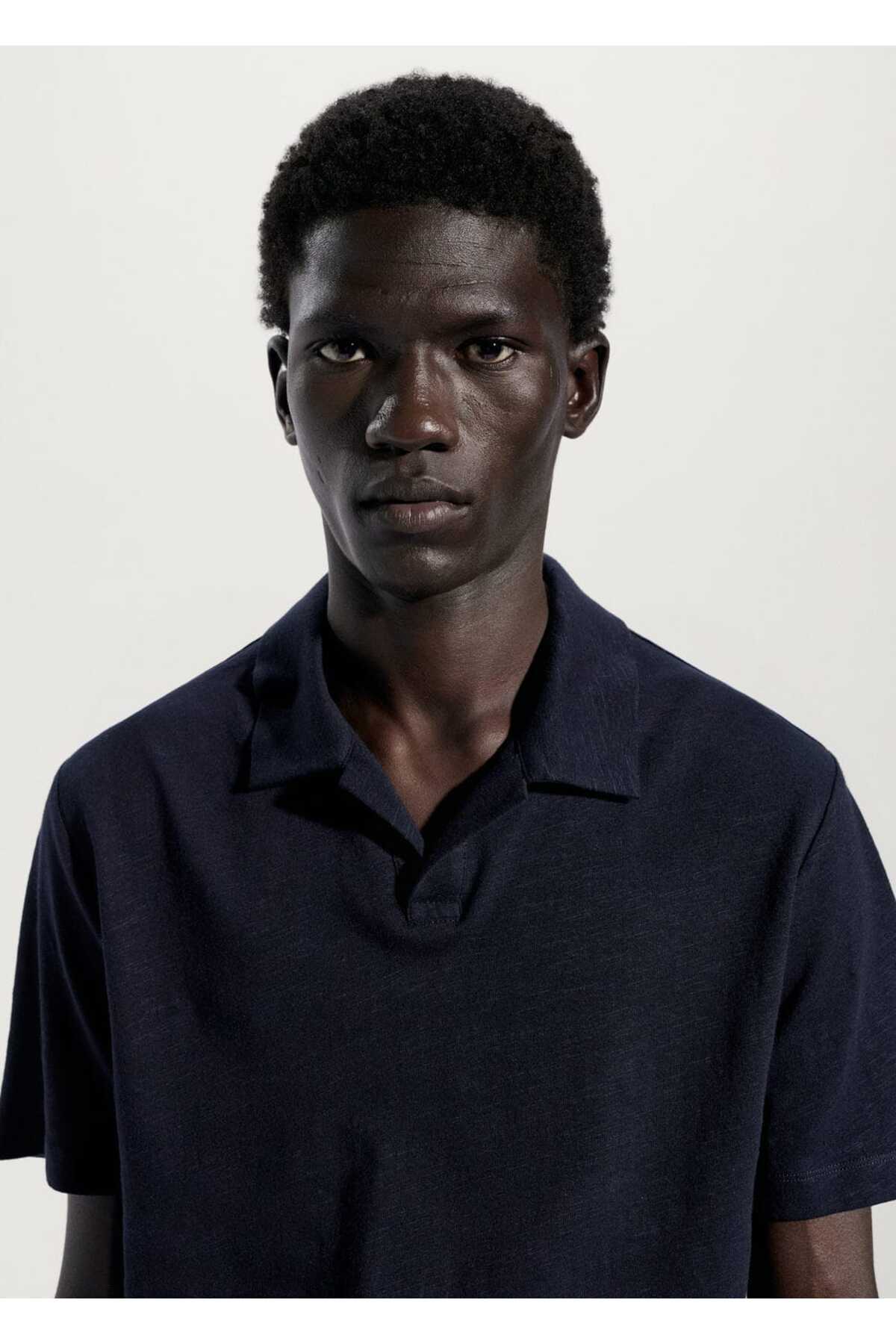 - نام : Slim fit pamuk-keten karışımlı polo