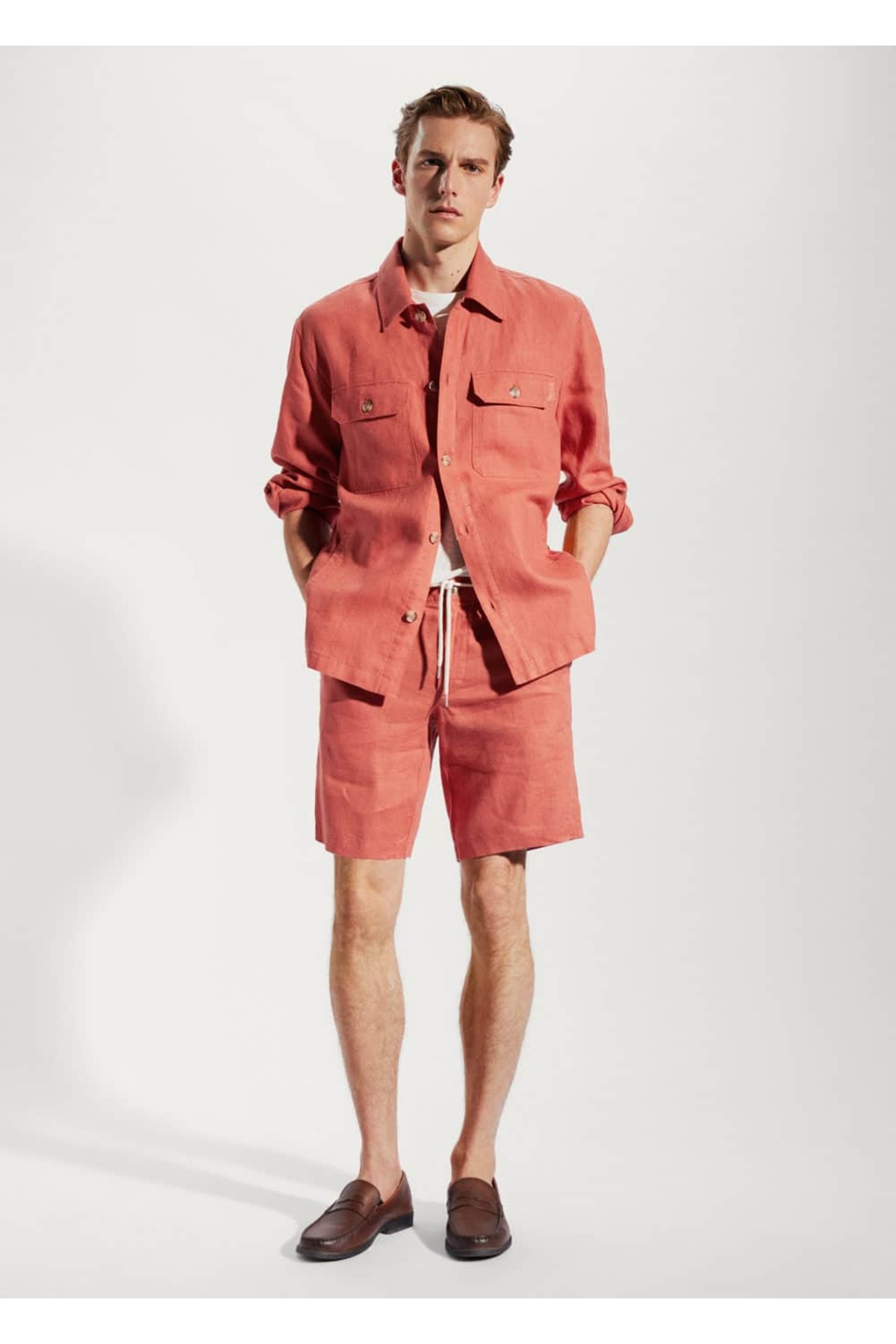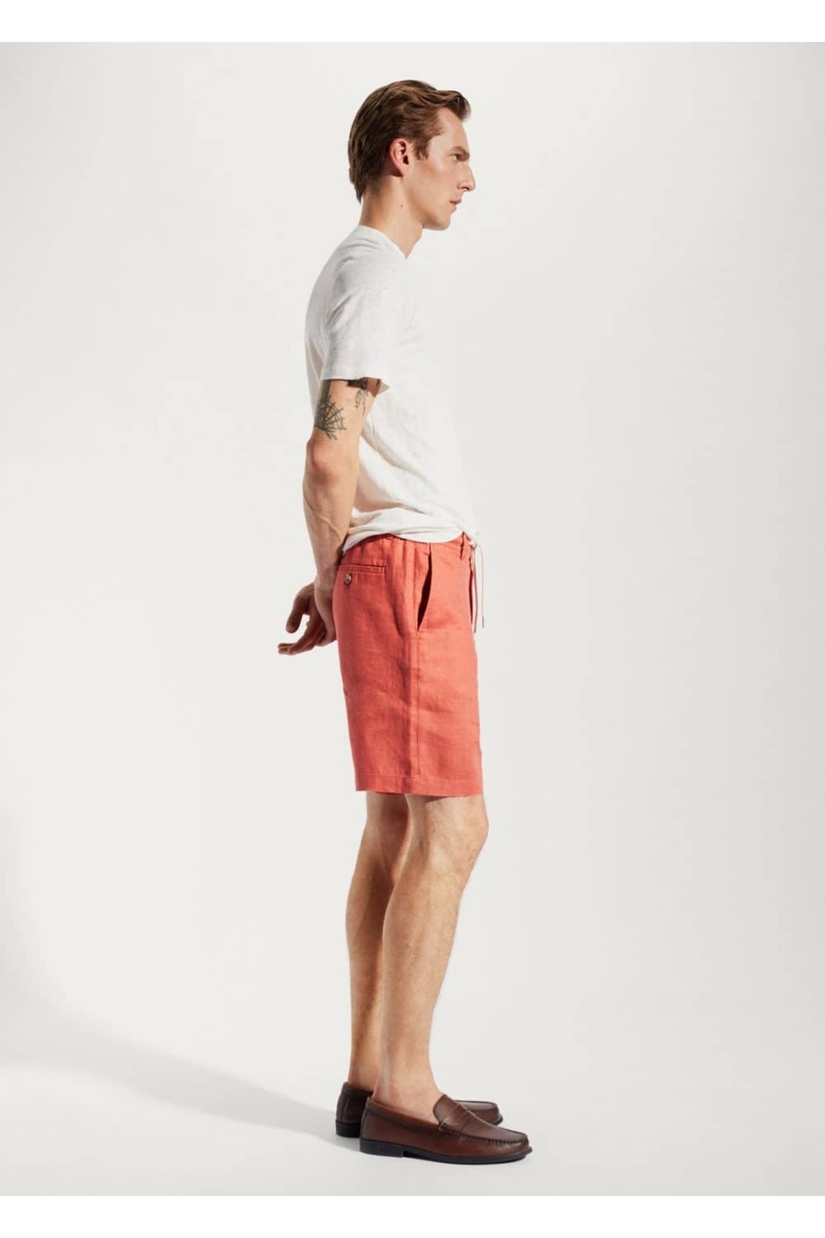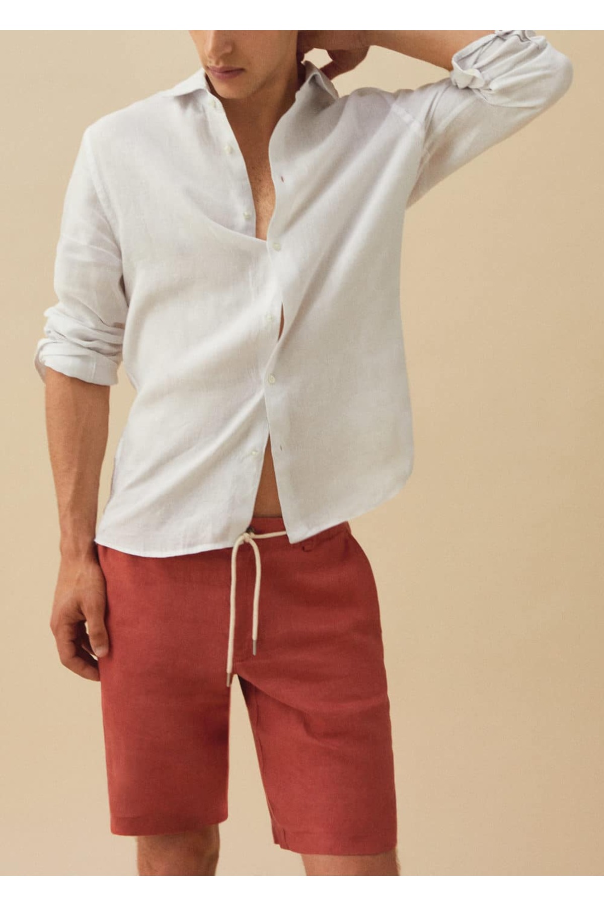Bermuda .-- atrani. Dar kesim, %100 keten kumaş, Ayarlanabilir bağcıklı elastik bel, İçten veya dıştan ayarlanabilir büzgü ip, Kemer köprülü, Çift düğmeli ve fermuarlı kapama, İki ön cepli, Düğmeli iki arka şerit cepli, Düz paça, Modelin boyu 190 cm'dir ve 42 beden giymektedir, Baştan aşağı görünüm olarak mevcut takım. 100% keten, Astar cebi: 100% pamuk. İç bacak ölçüsü 24.6 cm, Yan dikiş uzunluğu 49.5 cm. MAKİNEDE MAKS. 30°C'DE YIKAYIN, ÇAMAŞIR SUYU KULLANMAYIN, MAKS. 110°C İLE ÜTÜLEYİN, KURU TEMİZLEME YAPILMAZ, KURUTMA MAKİNESİNDE KURUTULAMAZ