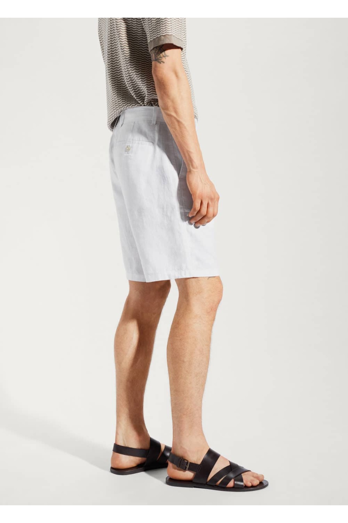 Bermuda .-- carp. %100 keten, Dar kesim, Çift düğmeli ve fermuarlı kapama, Kemer köprülü, Yanları iki cepli, Düğmeli iki arka şerit cepli, Modelin boyu 185 cm'dir ve 42 beden giymektedir, Basic ürün koleksiyonu, Antoine Griezmann Kampanyası. 100% keten, Astar cebi: 65% polyester,35% pamuk. İç bacak ölçüsü 25.6 cm, Yan dikiş uzunluğu 50.5 cm. MAKİNEDE MAKS. 30°C'DE YIKAYIN, ÇAMAŞIR SUYU KULLANMAYIN, MAKS. 110°C İLE ÜTÜLEYİN, KURU TEMİZLEME YAPILMAZ, KURUTMA MAKİNESİNDE KURUTULAMAZ