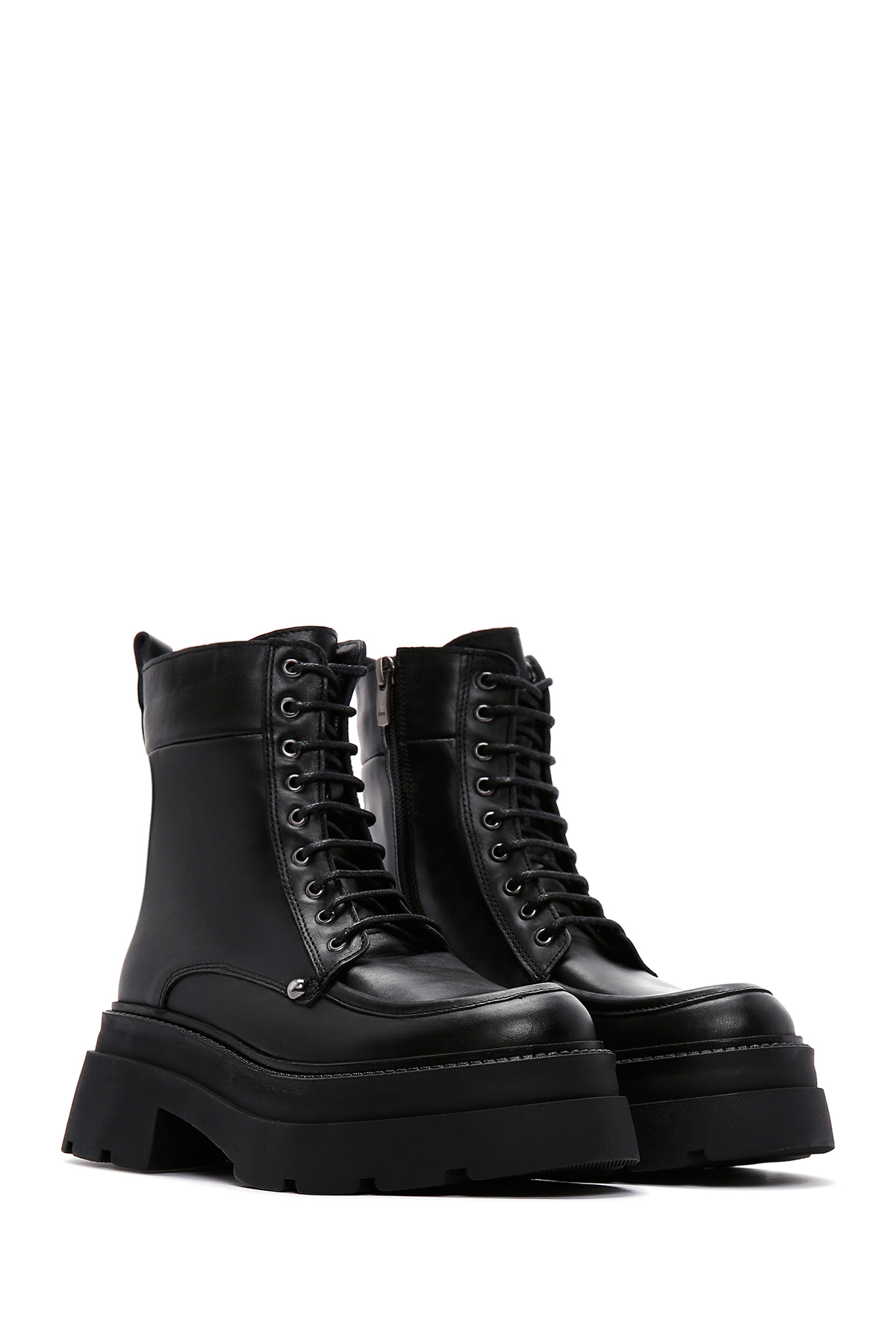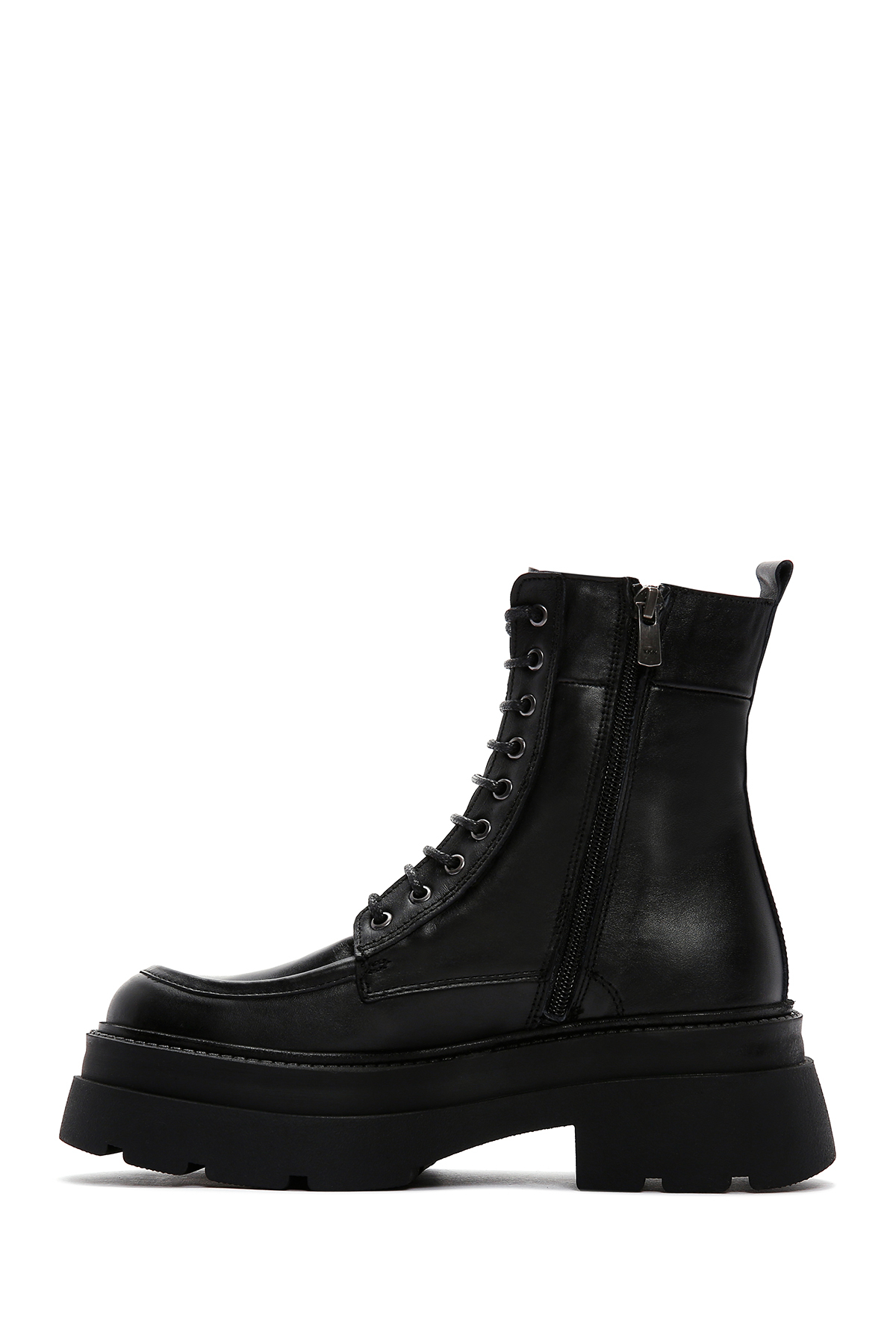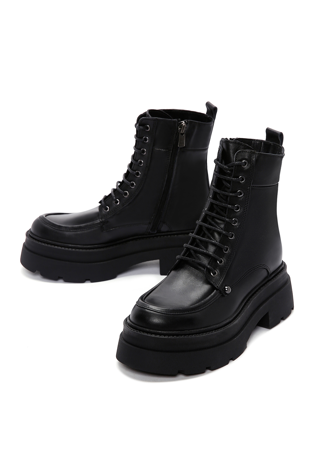 - نام : Kadın Deri Fermuarlı Kalın Tabanlı Düz Postal Bot