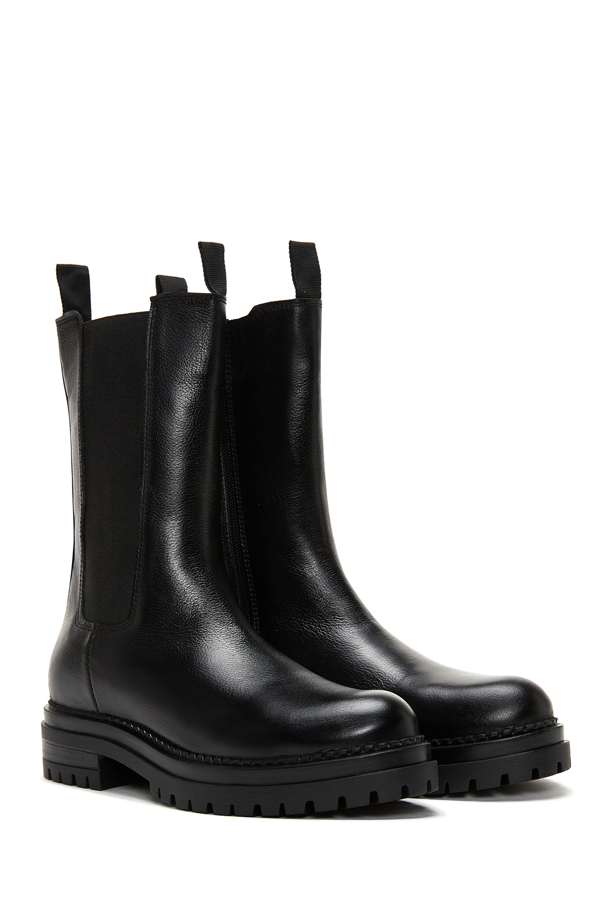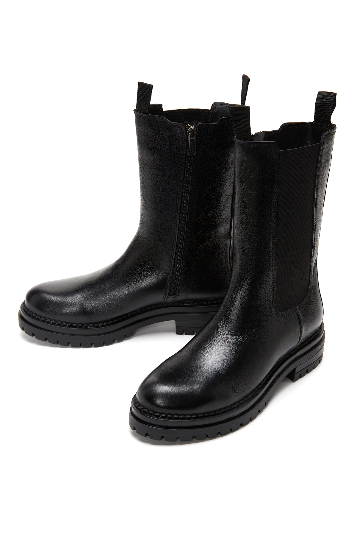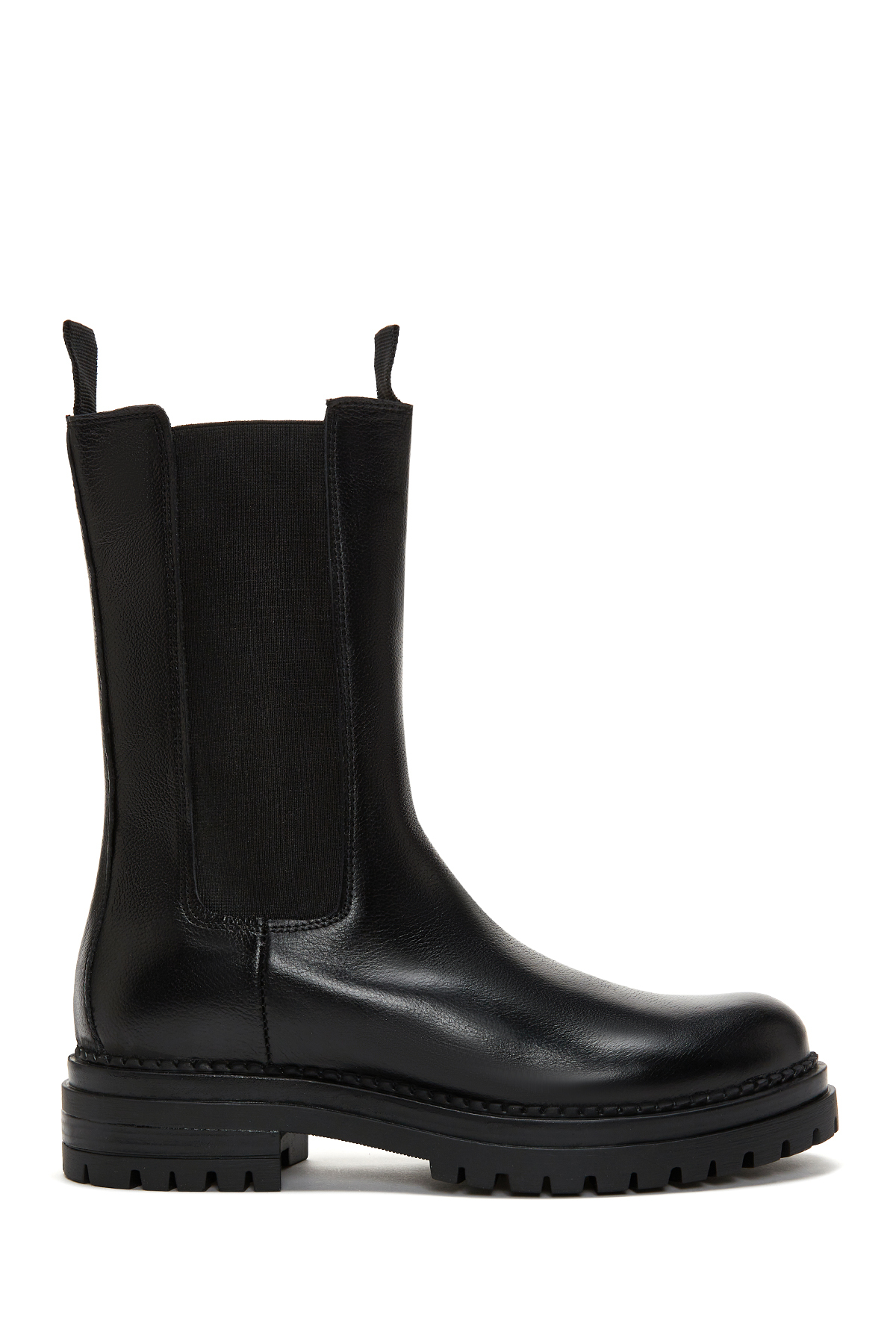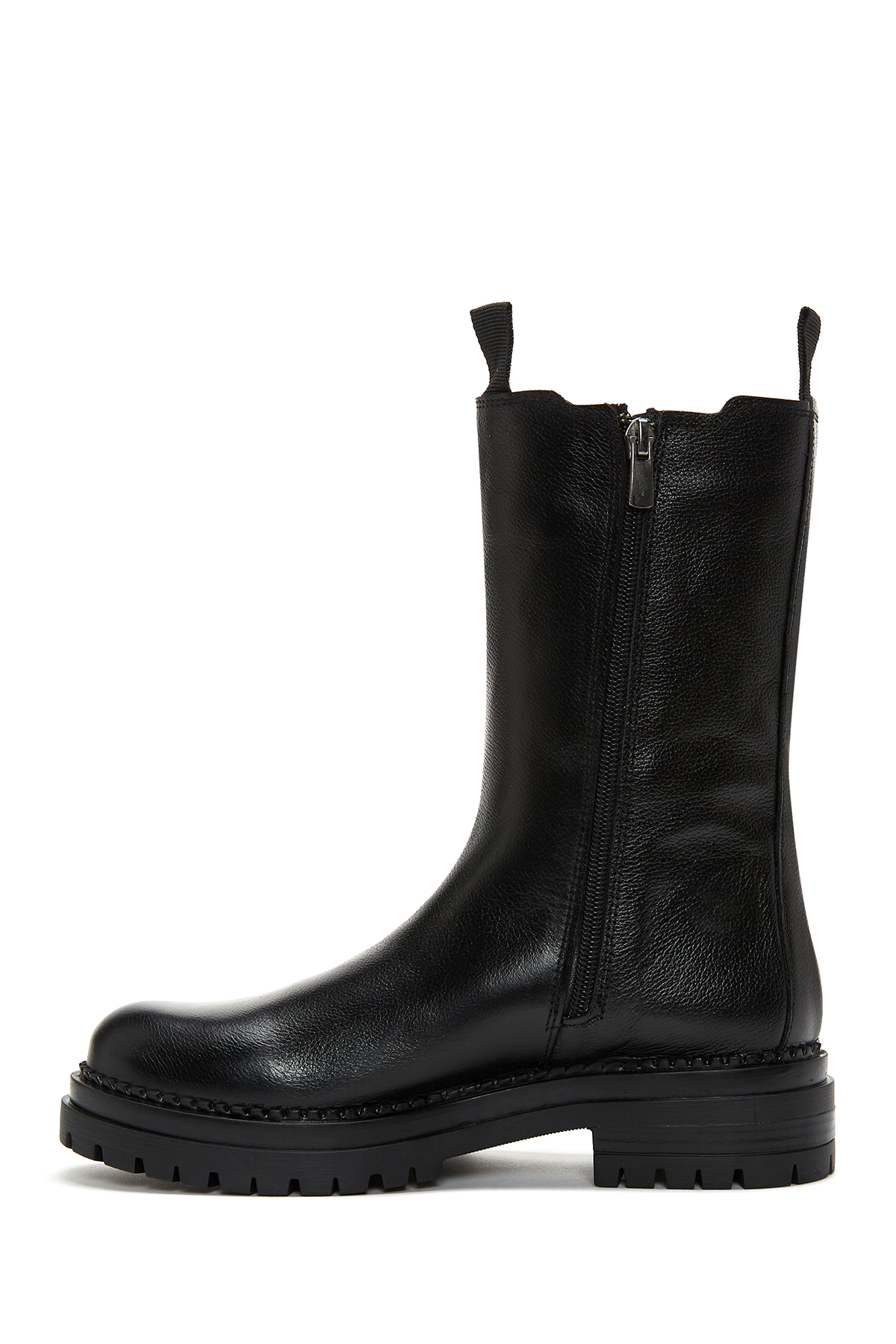 - نام : Kadın Siyah Deri Fermuarlı Düz Chelsea Bot