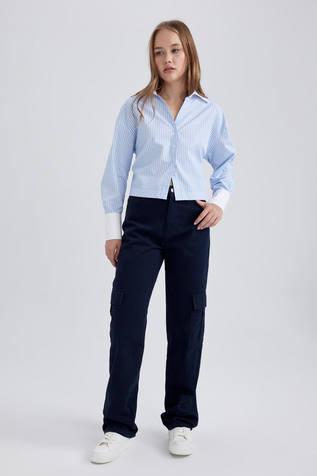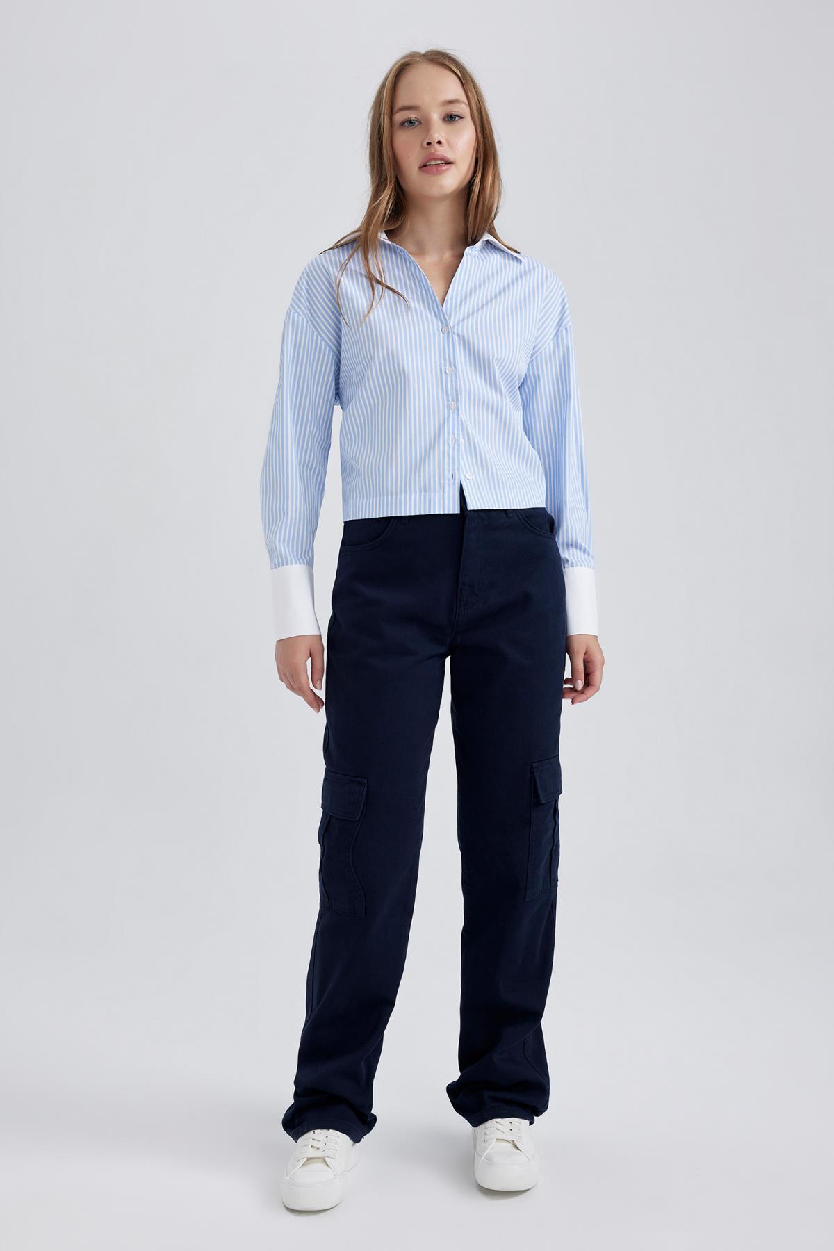 Straight fit gabardin dokuma kumaşlı şık tasarımı, kolayca fit bir görünüm sağlayan kargo cepli modeli her tarz crop sweatshirt, crop top, basic tişört, tunik, kimono, triko kazak ve balon kollu gömlekler ile kolayca kombinleyip tarz bir görünüm sağlayabileceğiniz, yumuşacık dokusu ve farklı renk seçenekleriyle DeFacto Kadın Coool Straight Fit Kargo Gabardin Pantolon.