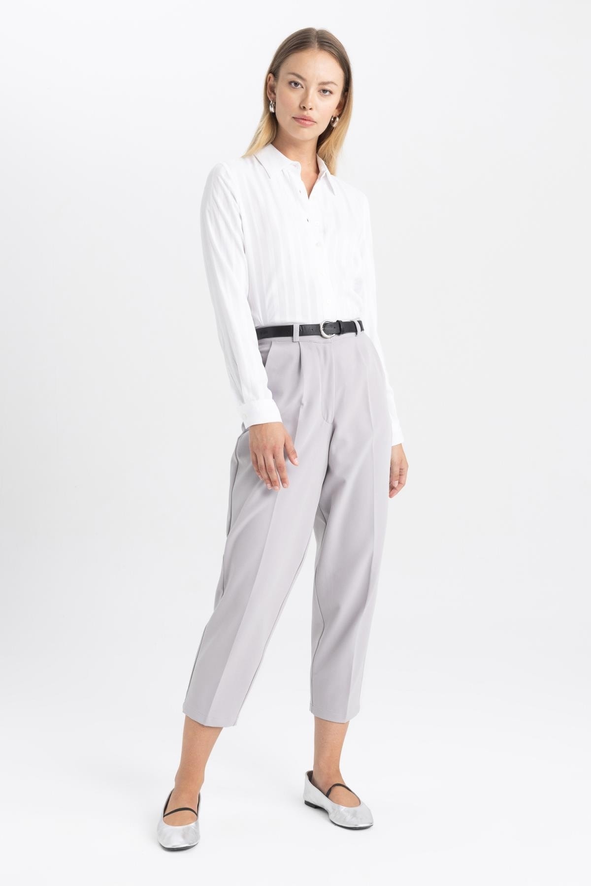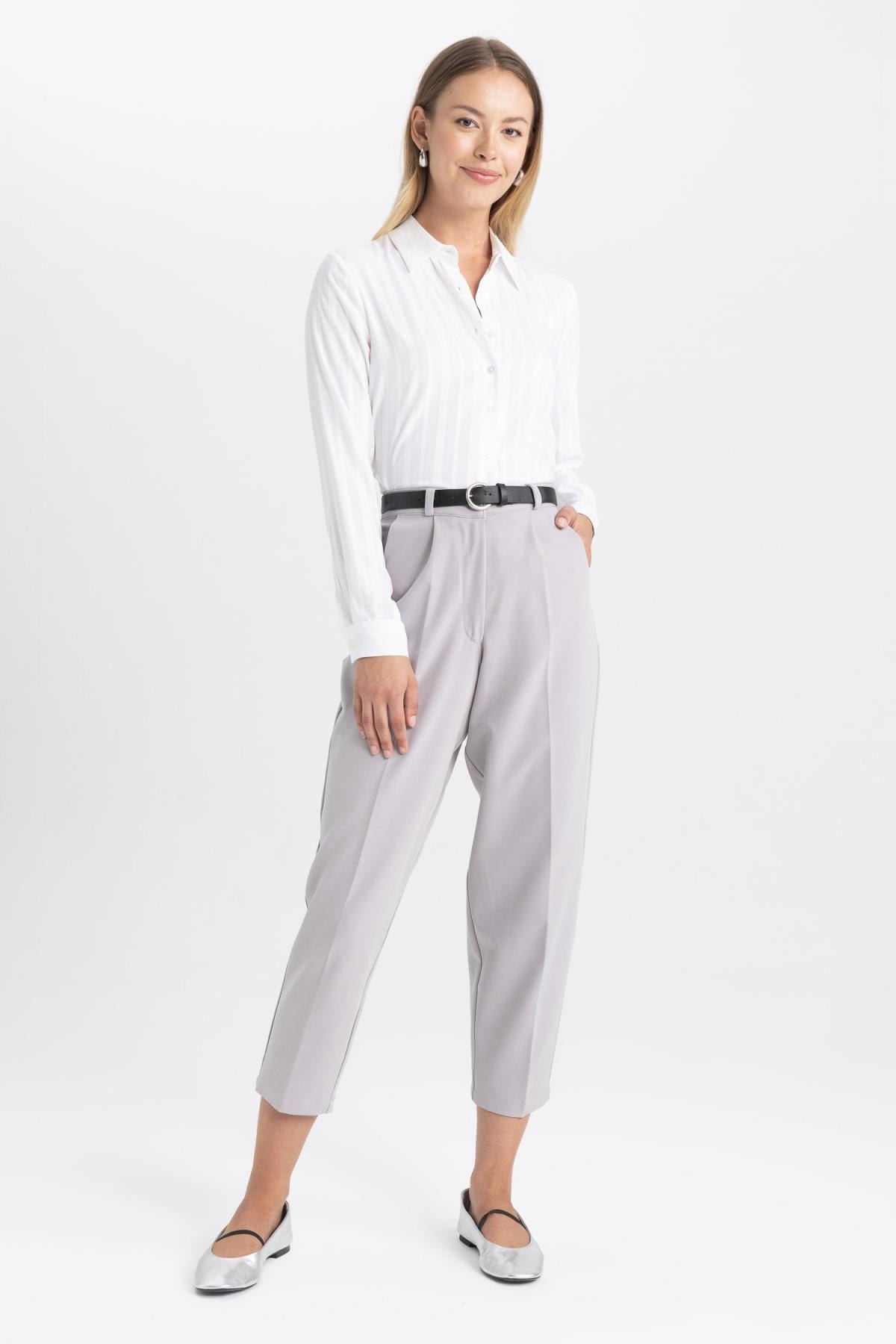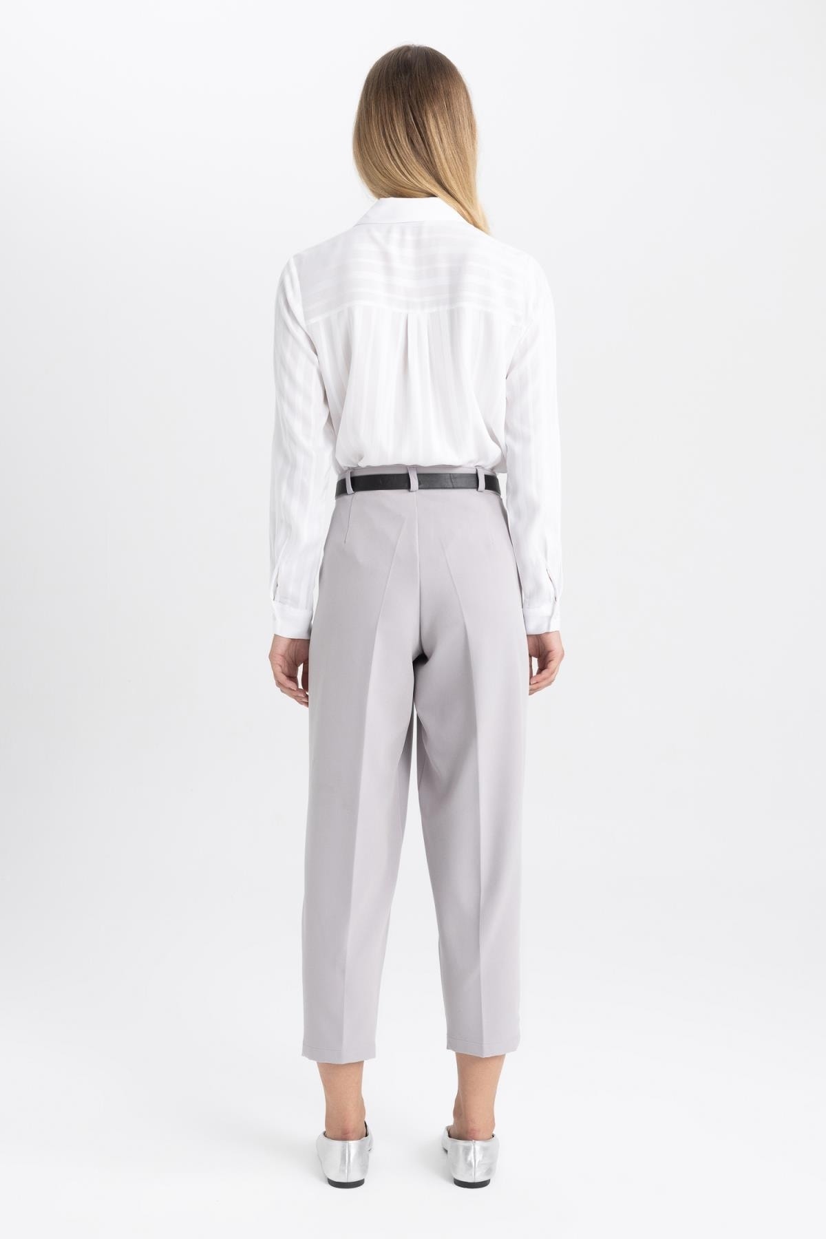 Rahat Tapered fit rahat kesimi ile kolayca fit bir görünüm elde edebileceğiniz, yüksek belli, aynı zamanda smart giyimde son zamanların en trend tercihi, balon kollu gömlek, crop top blazer ceket ve slim fit üstlerle tamamlayabileceğiniz, kullanışlı renk tonuyla DeFacto Kadın Tapered Fit Cepli Kısa Paça Pantolon.
