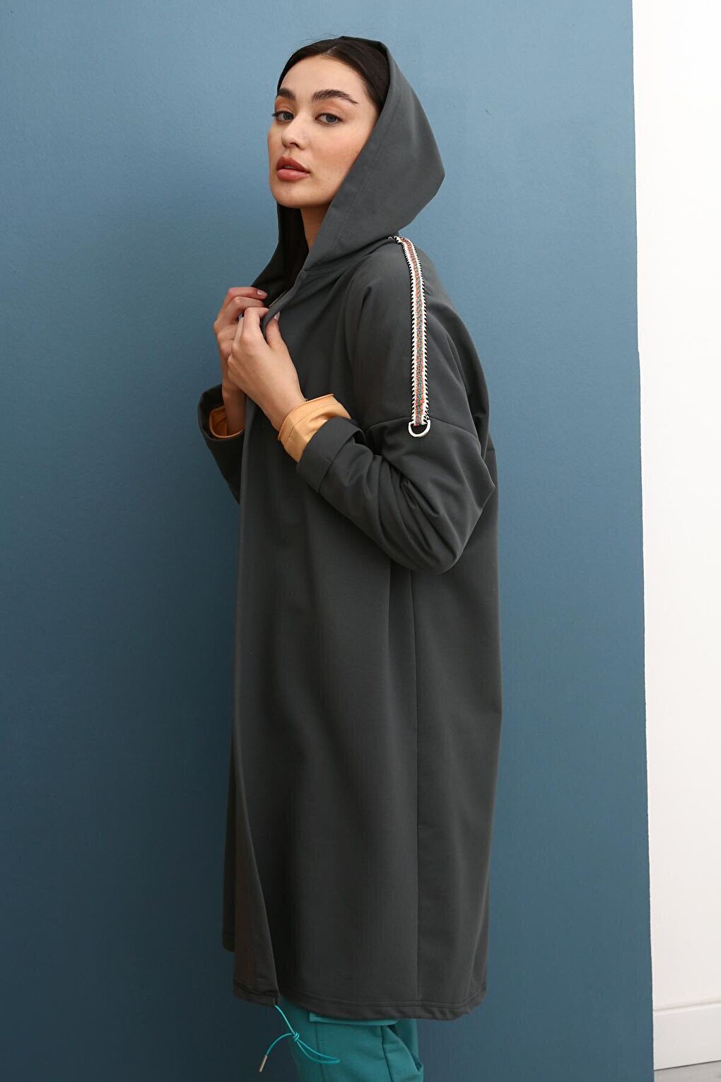 - نام : Antrasit Kapüşonlu Şerit Detaylı Salaş Hırka