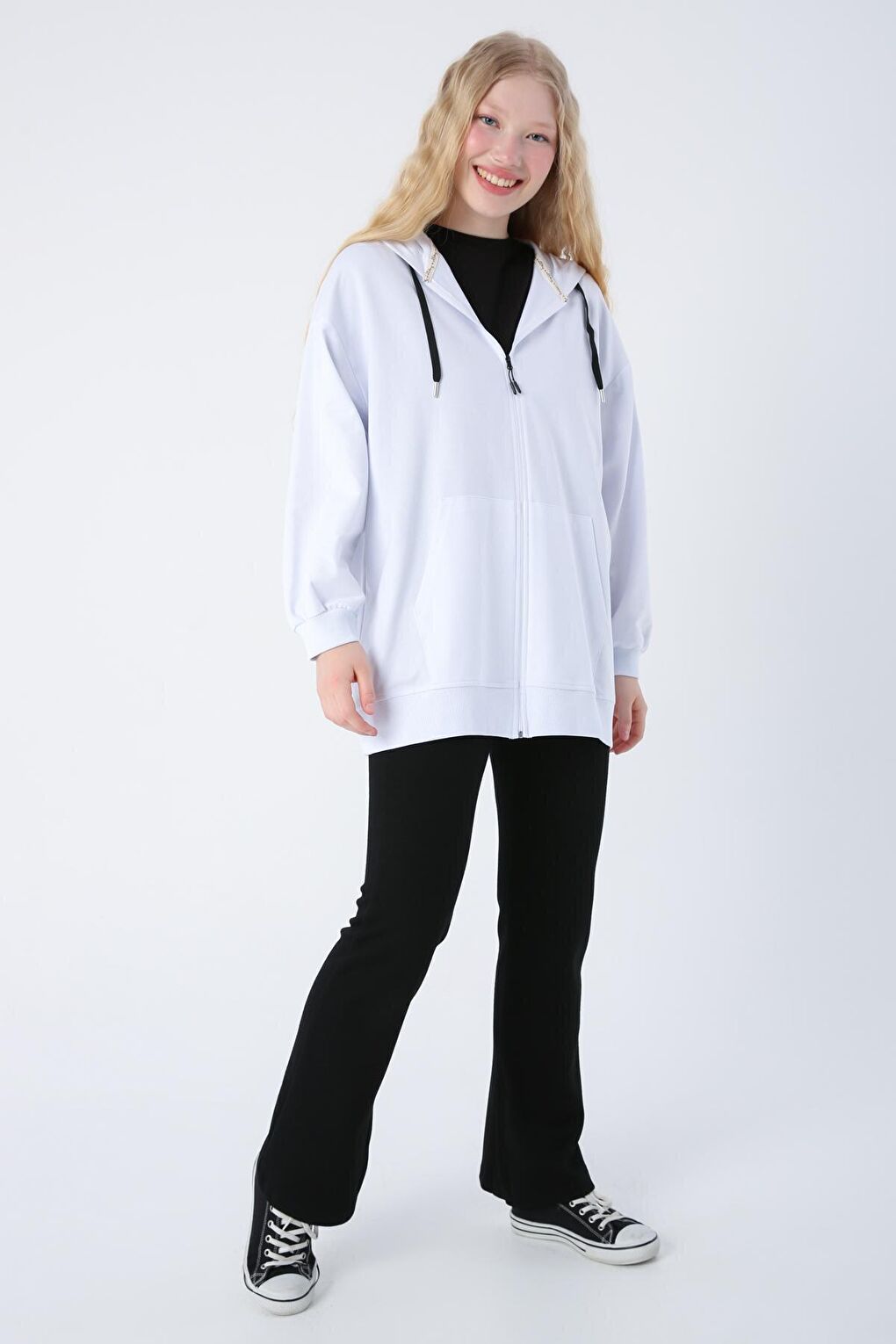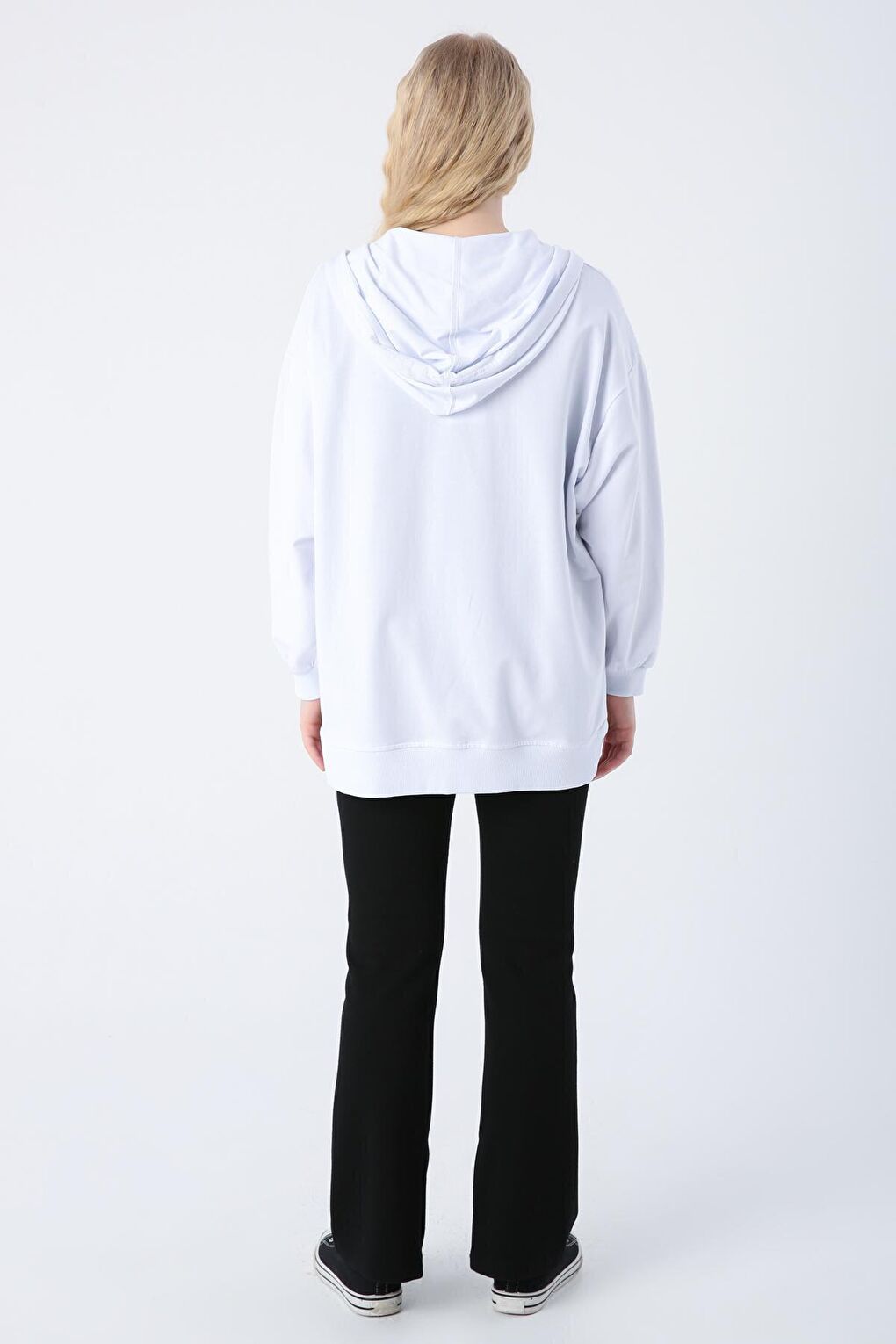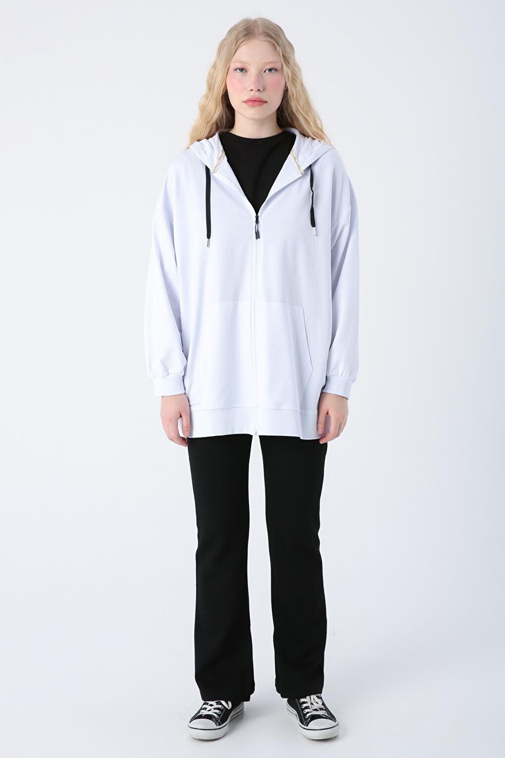 - نام : Beyaz Pamuklu Oversize Kapüşonlu Sweat Hırka