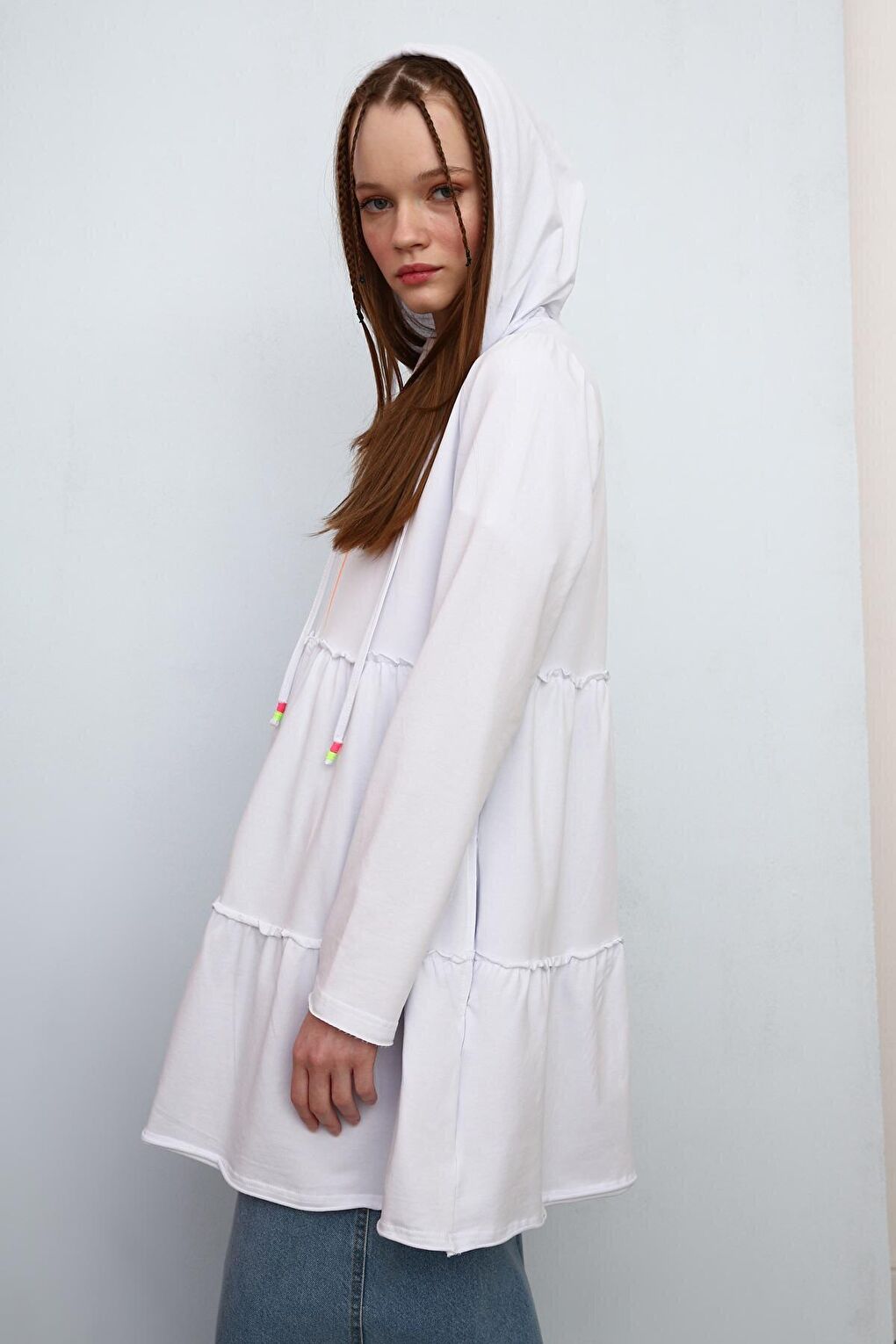 - نام : Beyaz Fırfırlı Neon Detaylı Kapüşonlu Örme Hırka