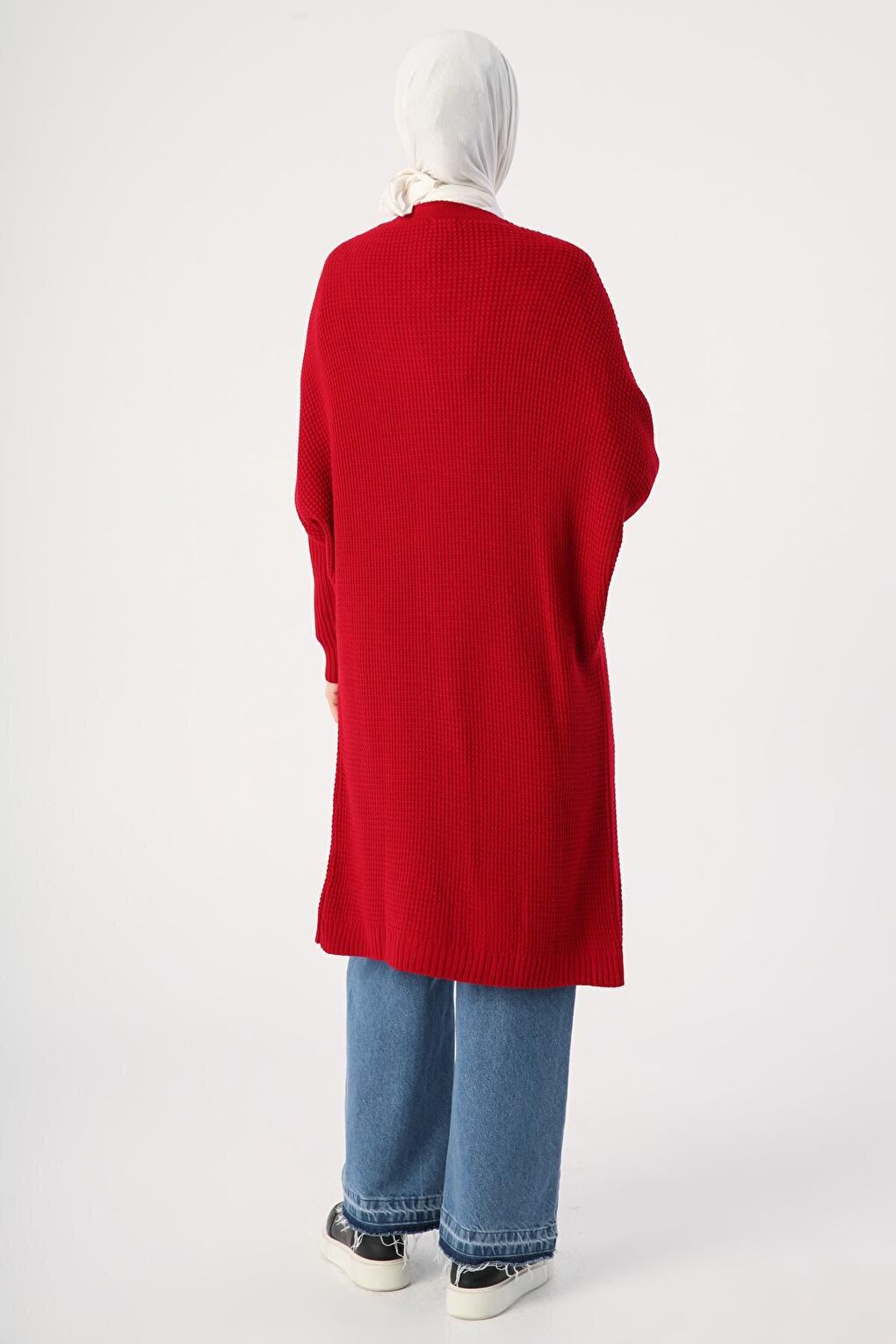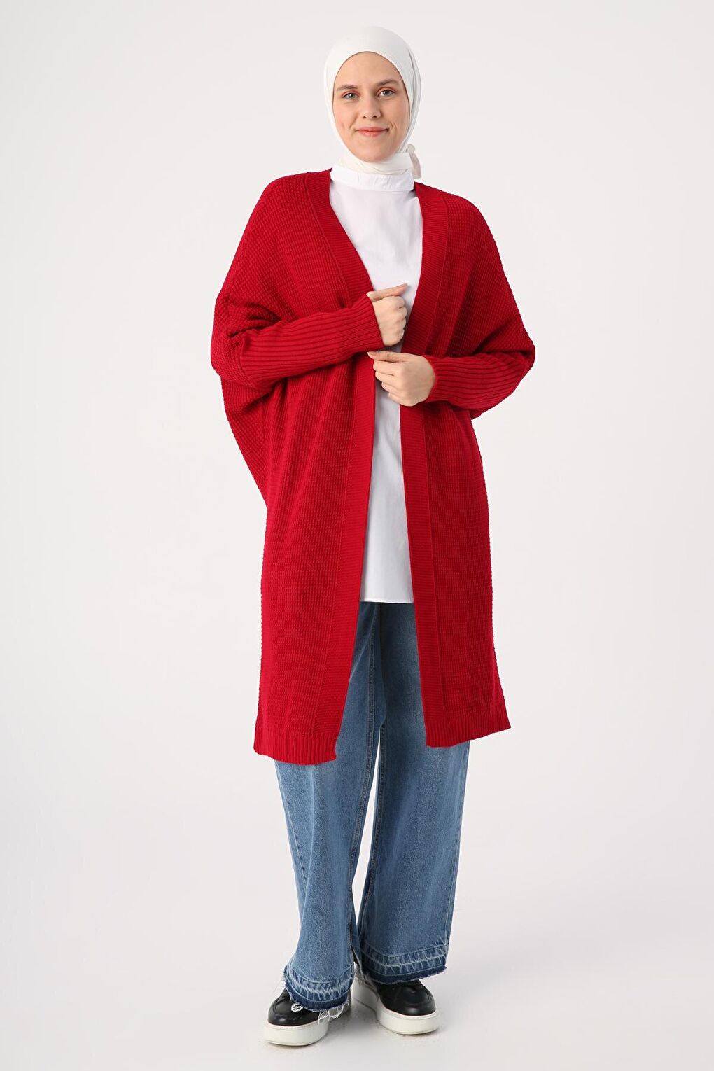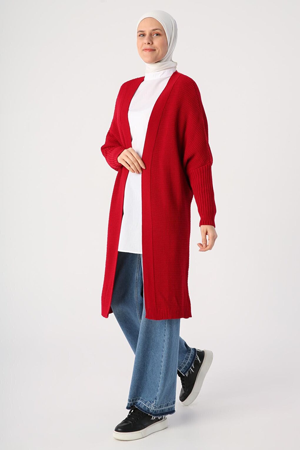 - نام : Kırmızı Önü Açık T-Kol Triko Hırka