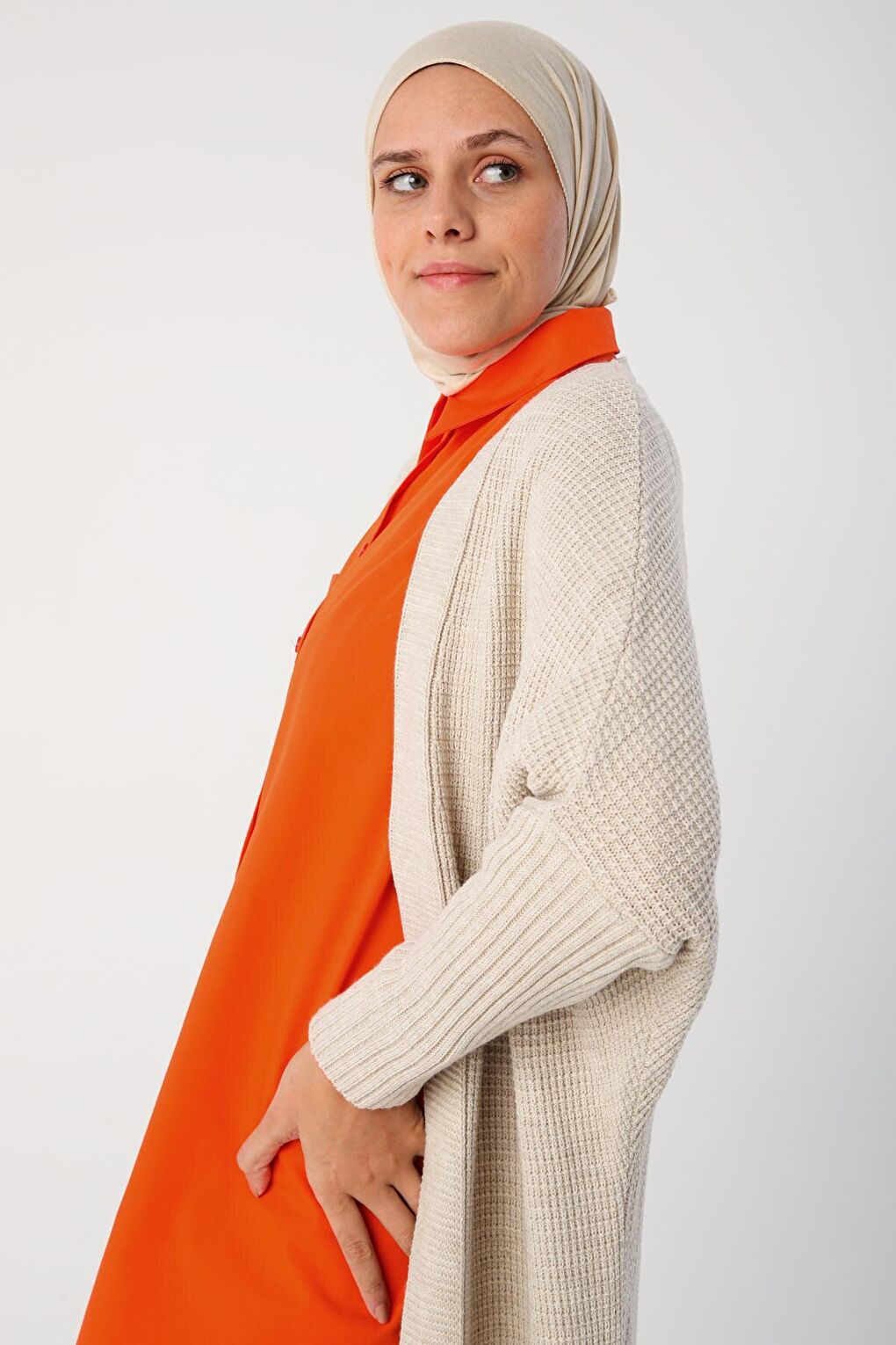 - نام : Bej Önü Açık T-Kol Triko Hırka