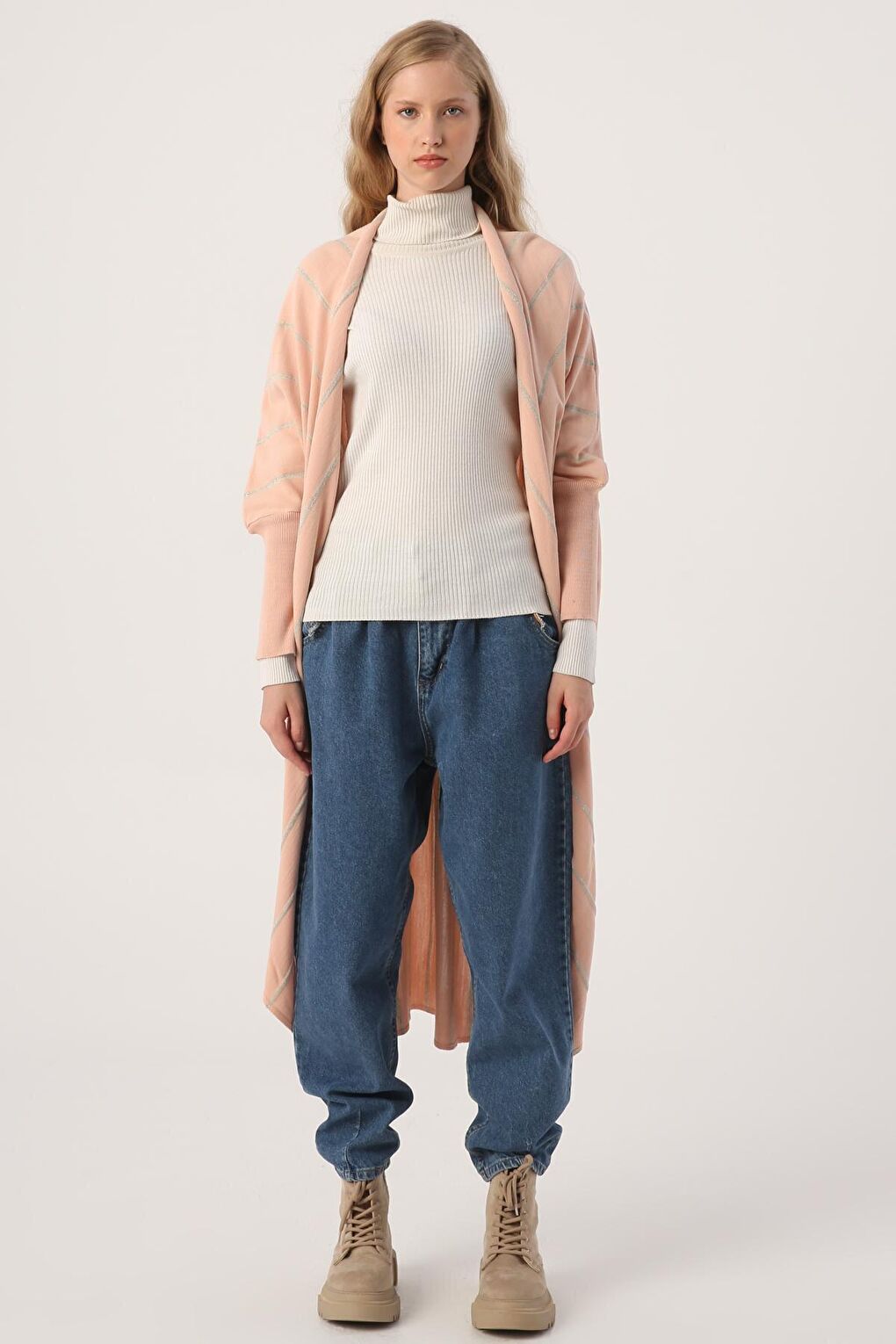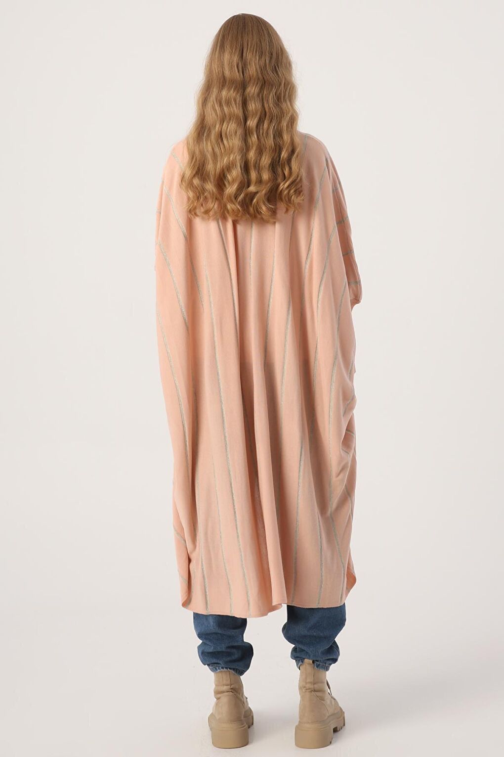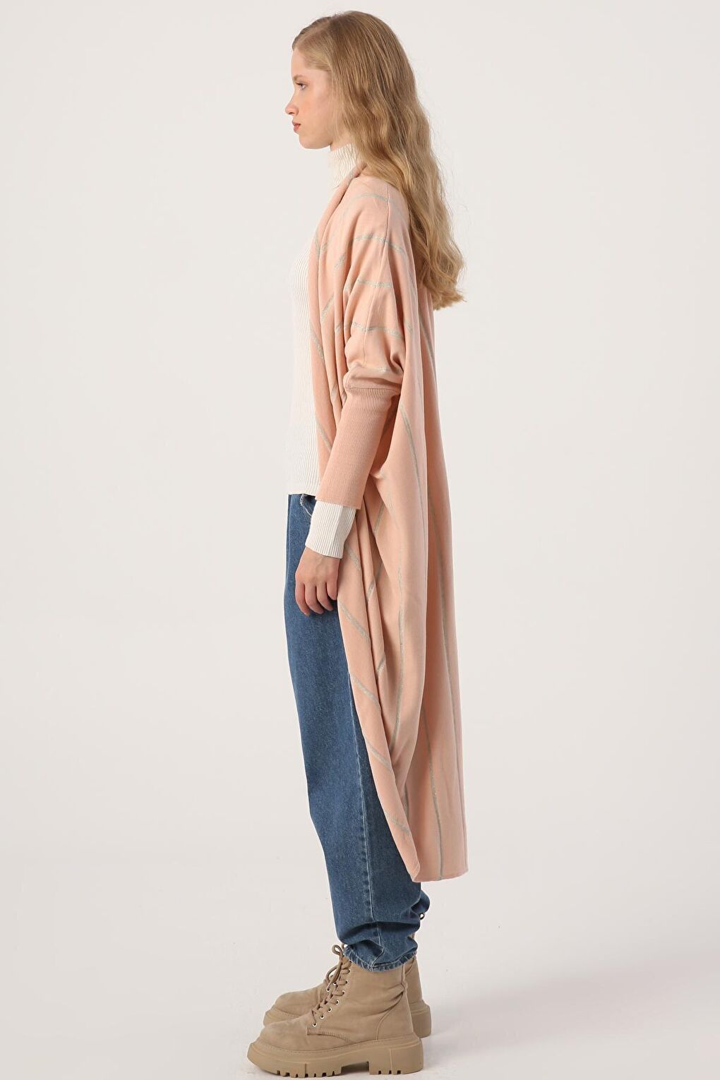 - نام : Pudra Çizgili Yarasa Kol Triko Hırka
