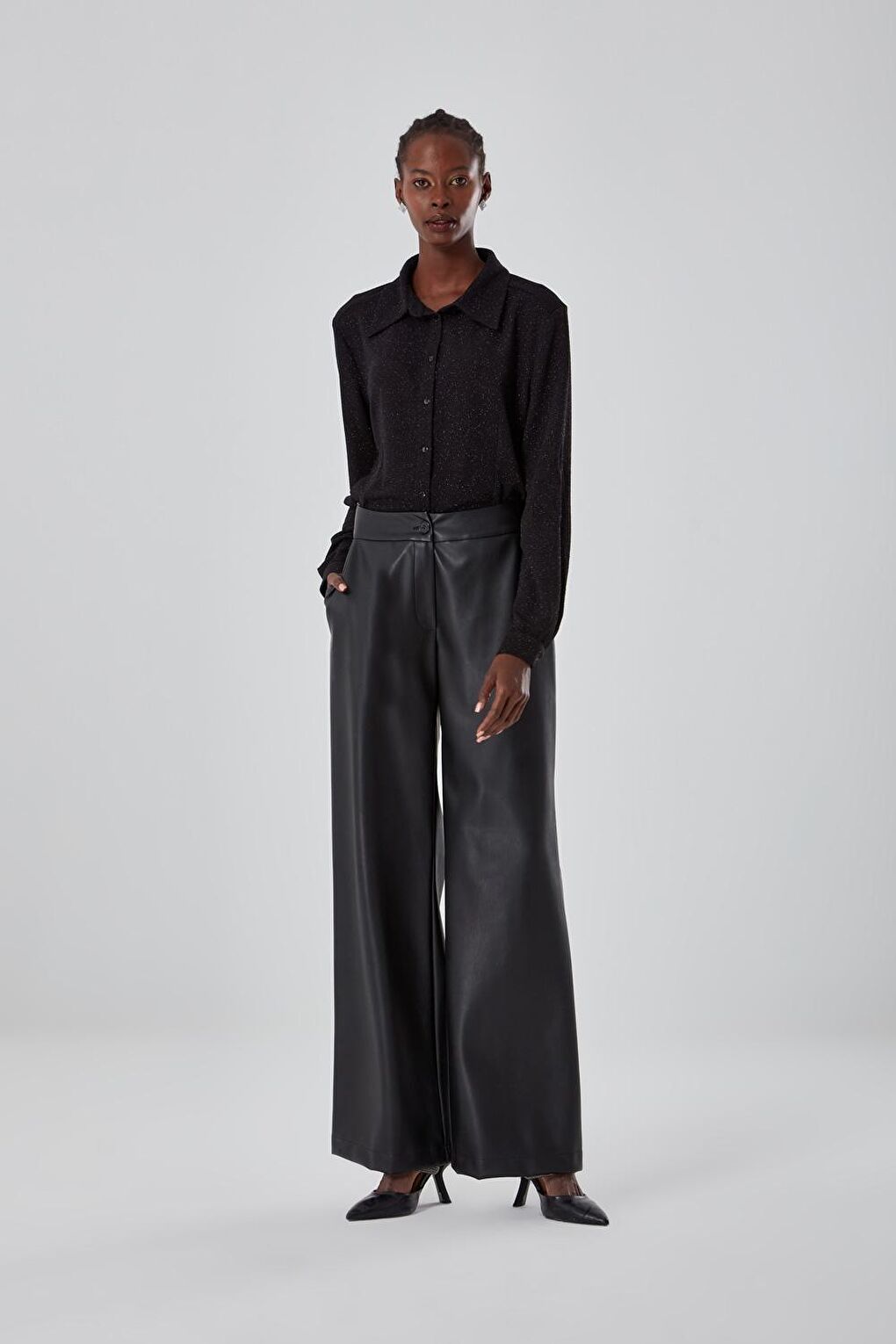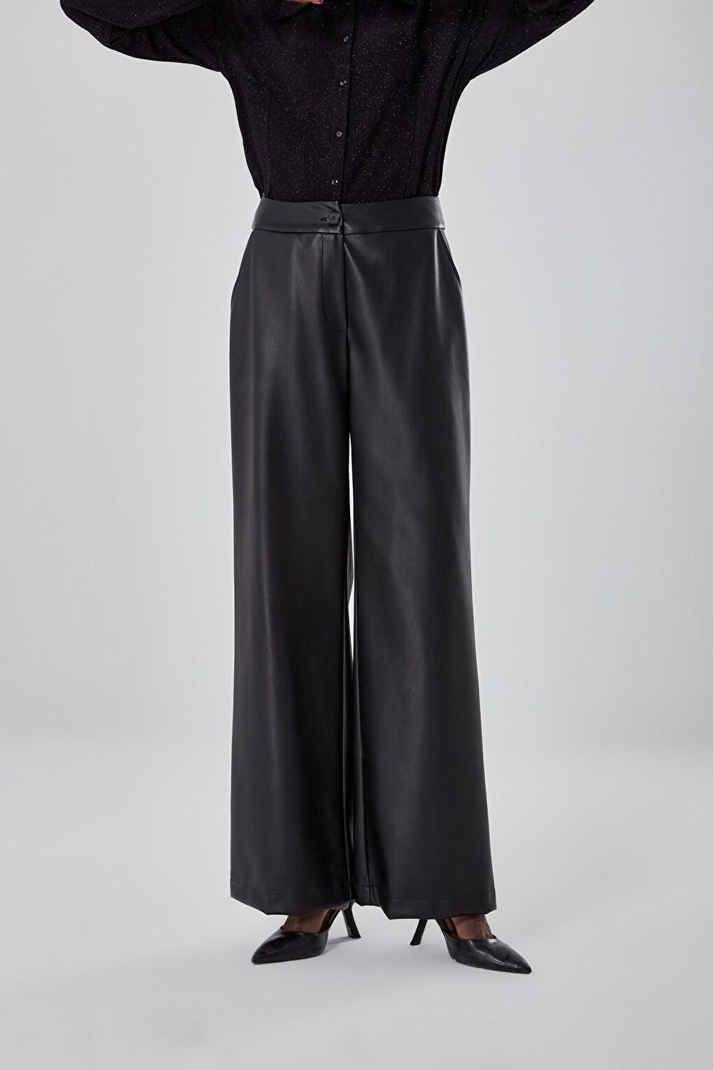 - نام : Deri Detaylı Rahat Siyah Pantolon