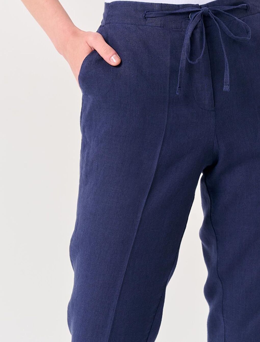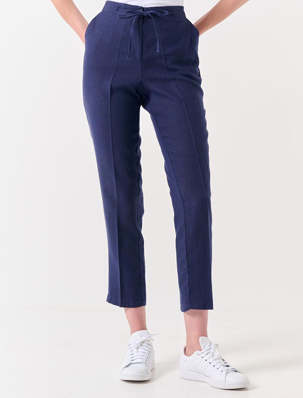- نام : Lacivert Normal Paça Normal Bel Dokuma Keten Pantolon