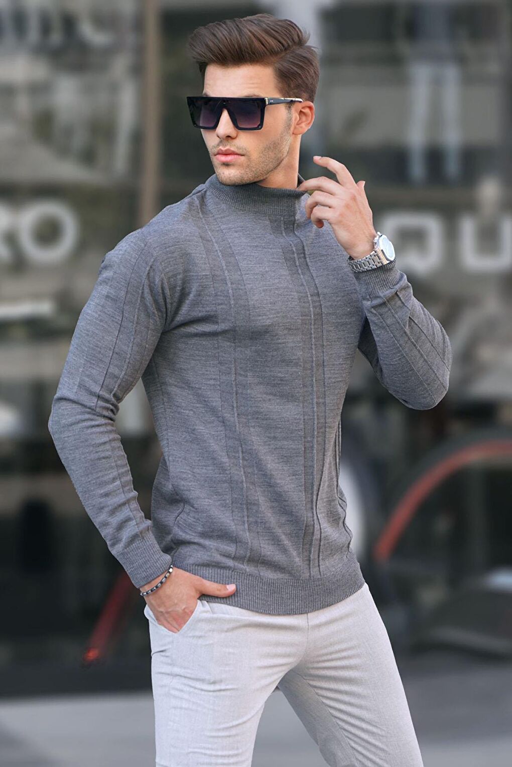 خرید اینترنتی پلیور مردانه طوسی برند Madmext 6825
