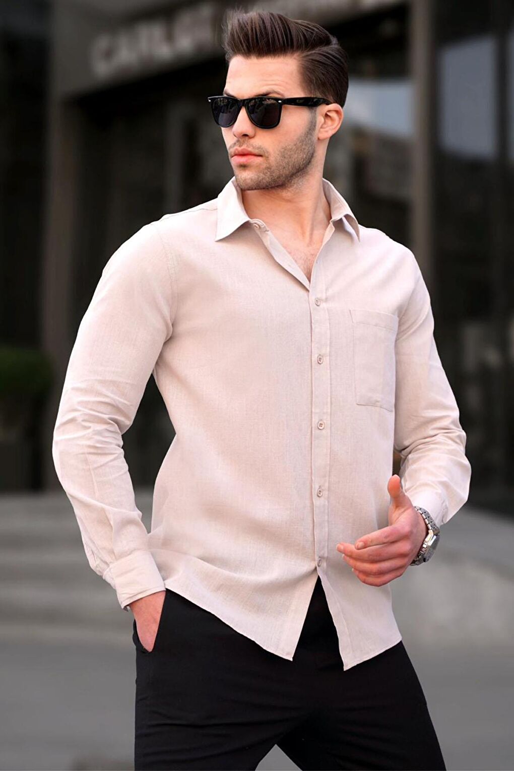 خرید اینترنتی پیراهن آستین بلند مردانه بژ برند Madmext 5592