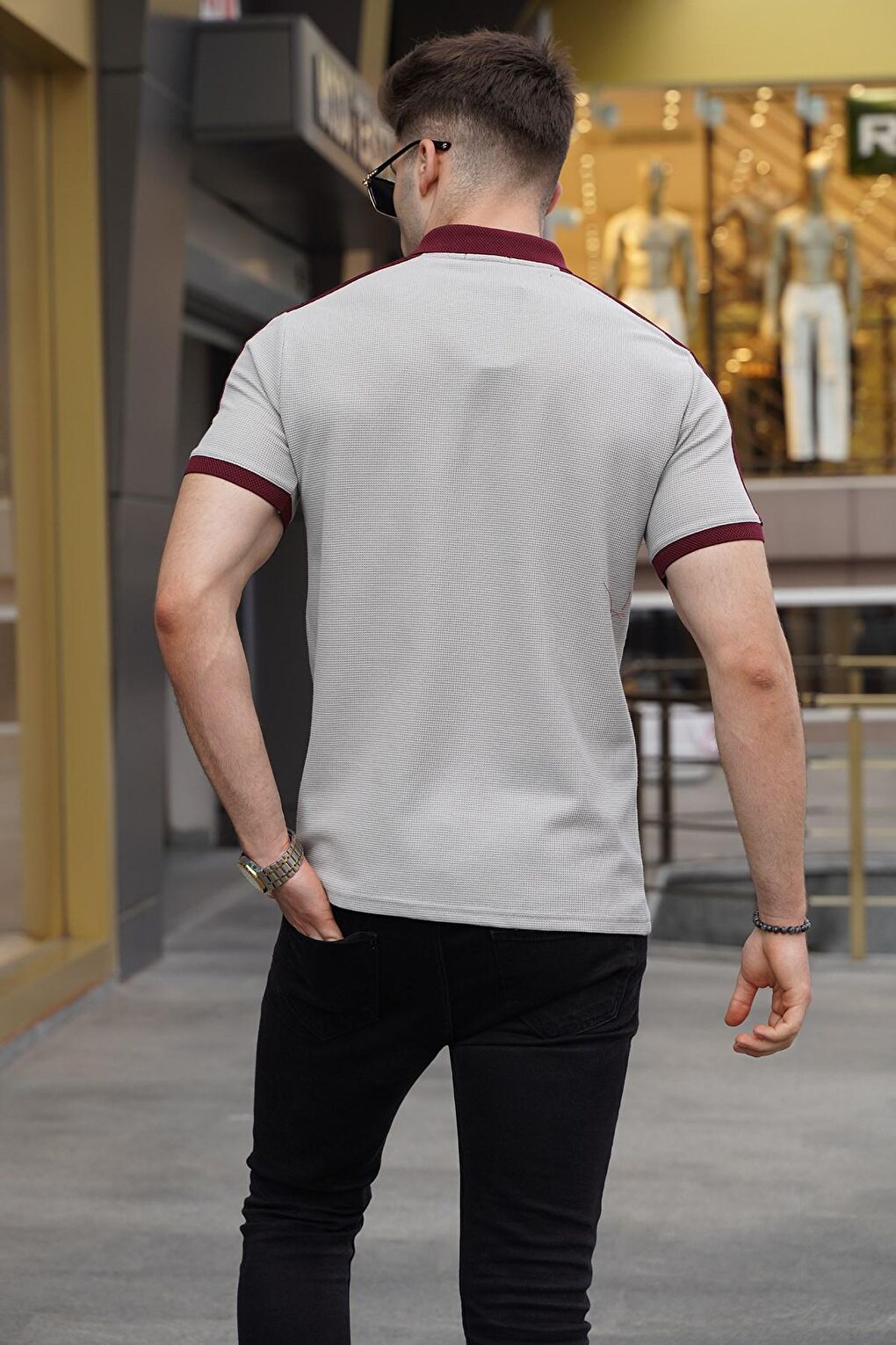 - نام : Boyalı Gri Kol Şeritli Polo Yaka Tişört 5888