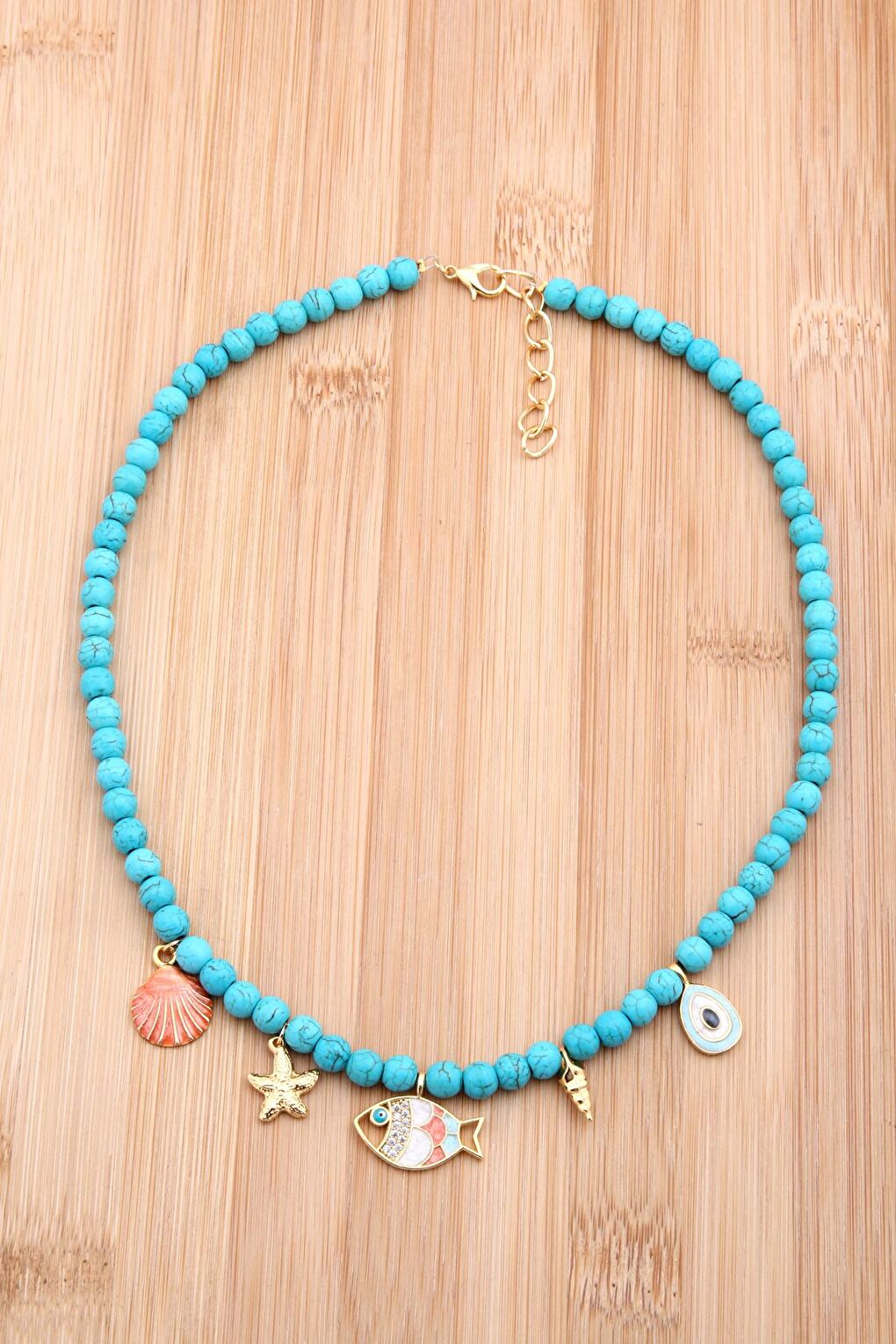- نام : Turkuaz Doğaltaşlı Deniz Figürlü Charm Kolye