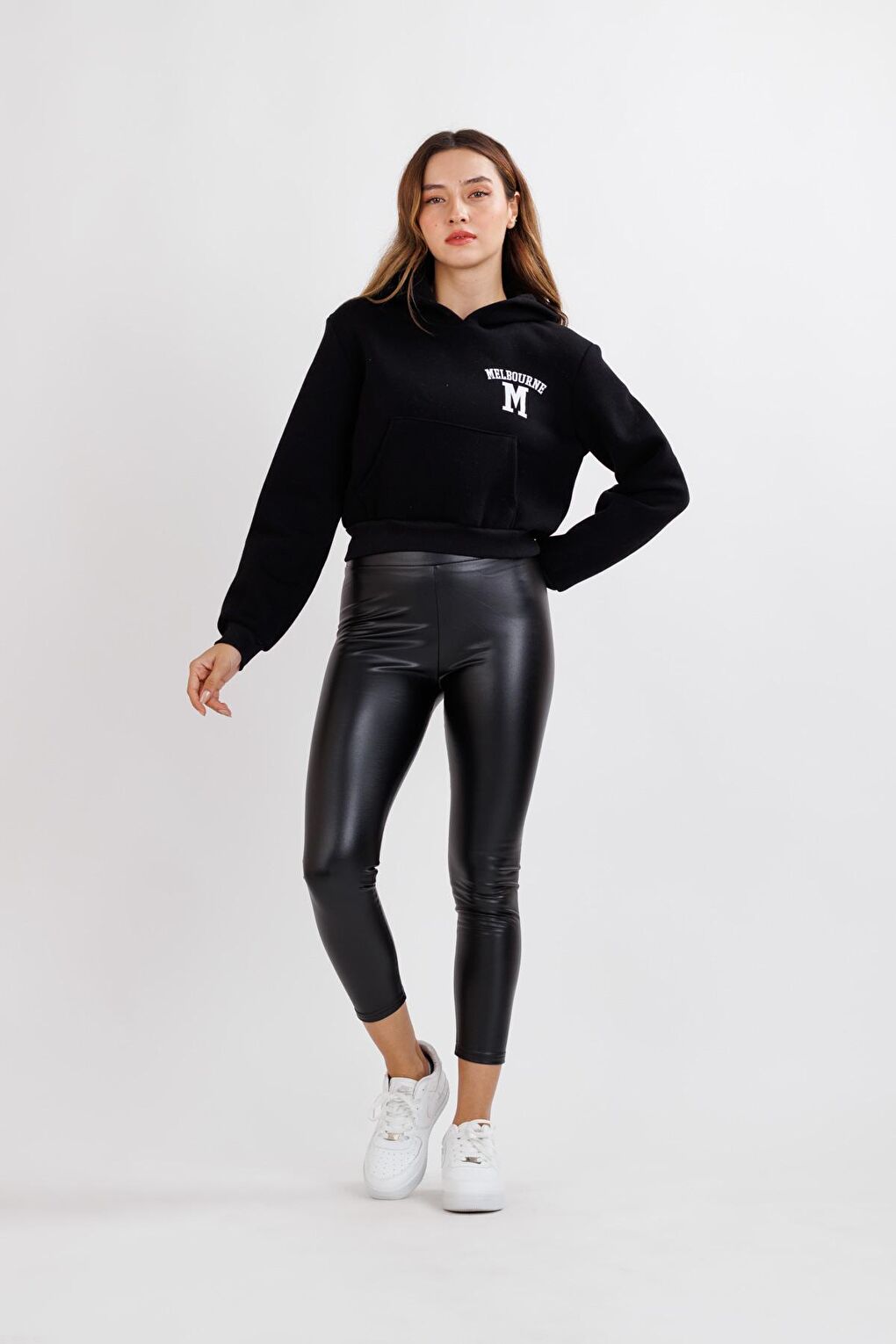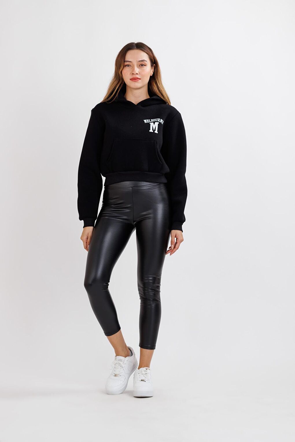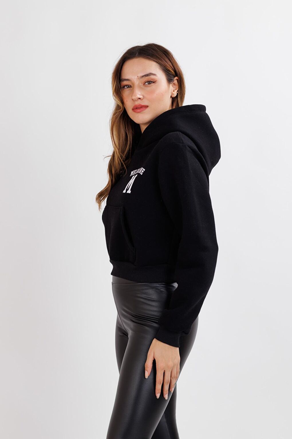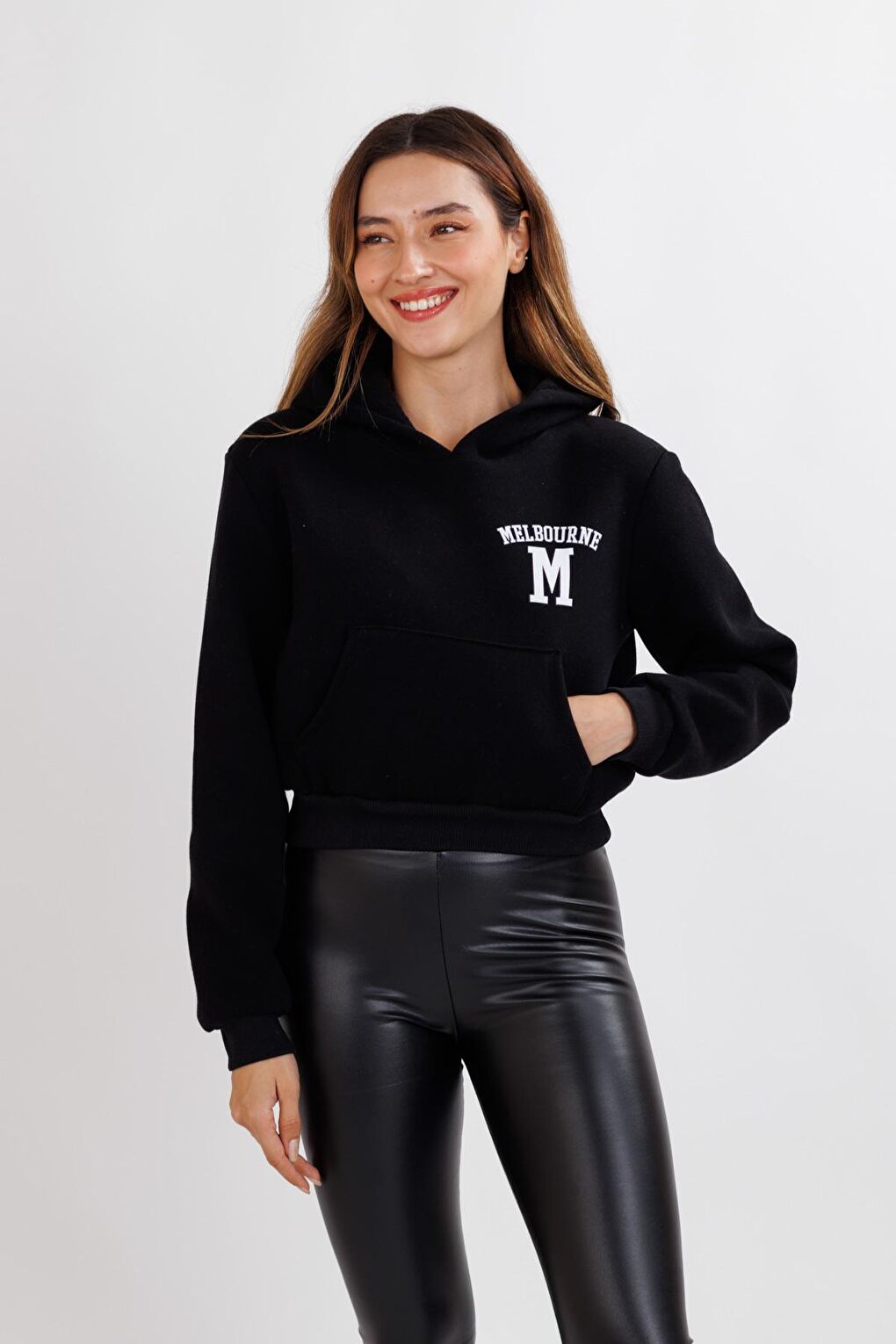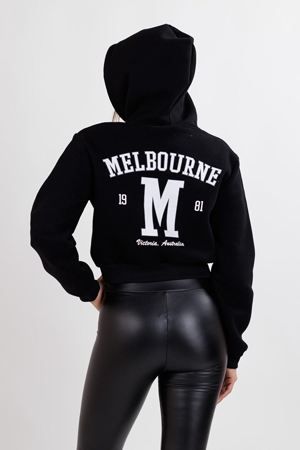 - نام : Kadın Siyah Kapüşonlu Melbourne Sırt Baskılı Crop Sweat
