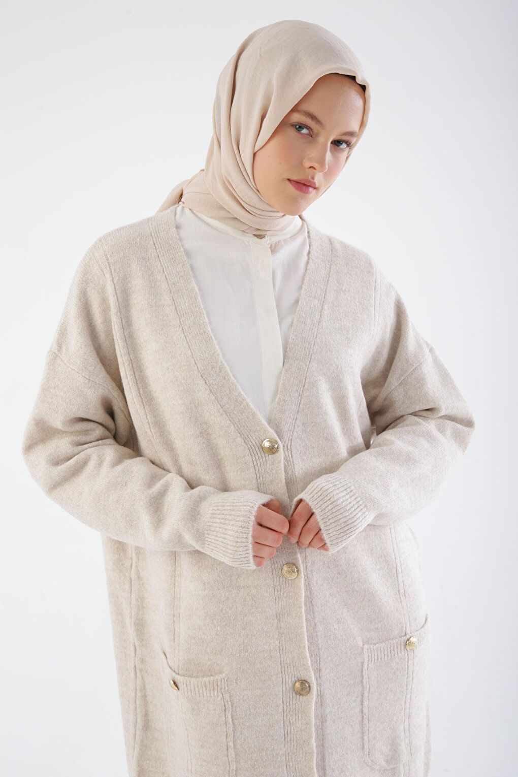 - نام : Taş V Yaka Cepli Triko Hırka