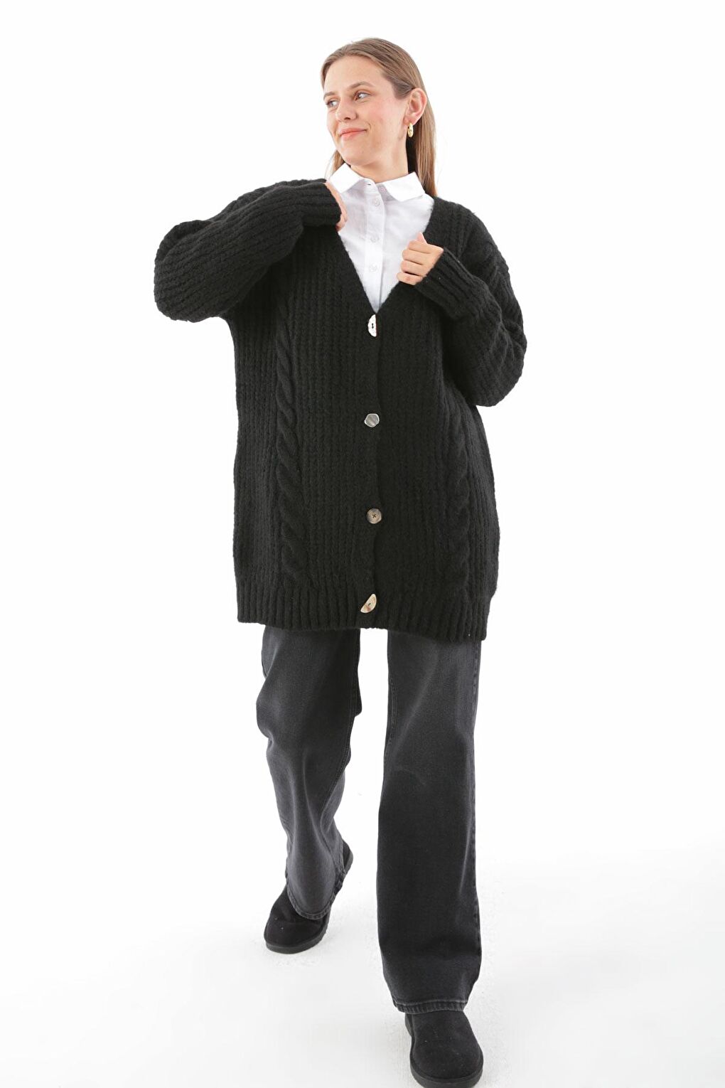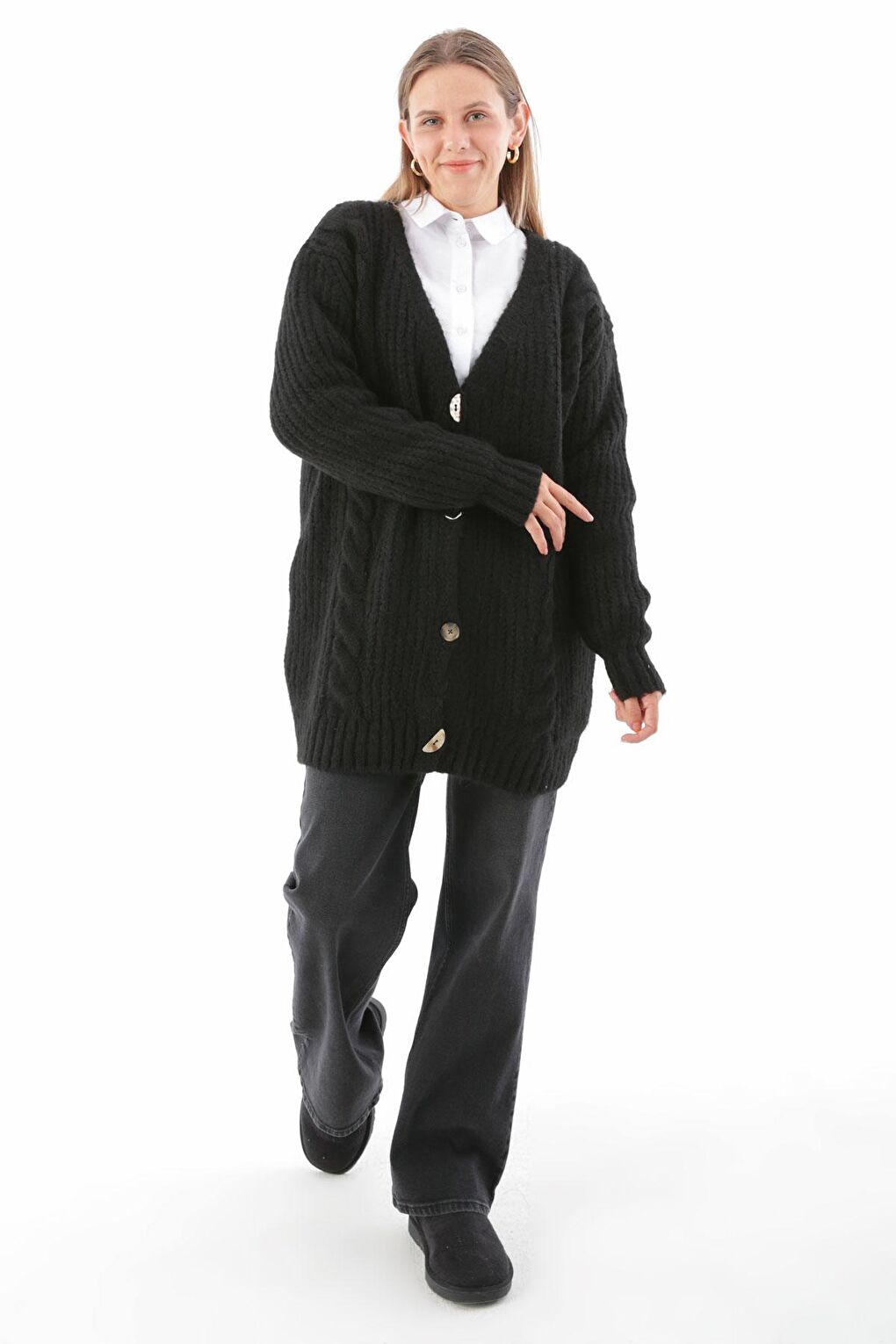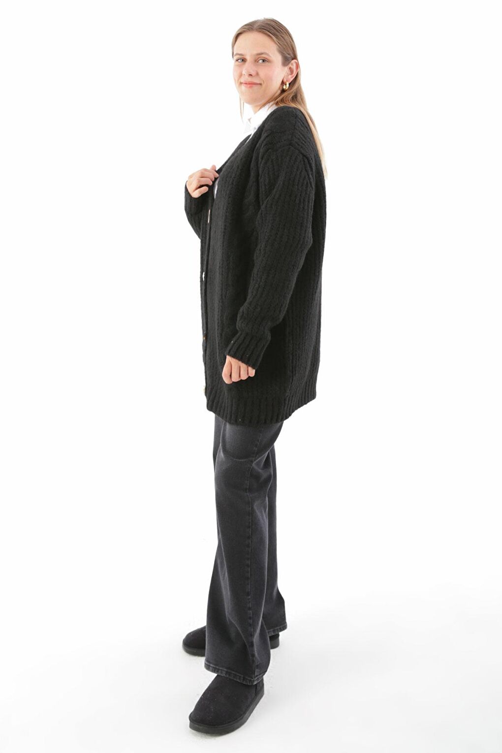 - نام : Siyah V Yaka Düğmeli Triko Hırka