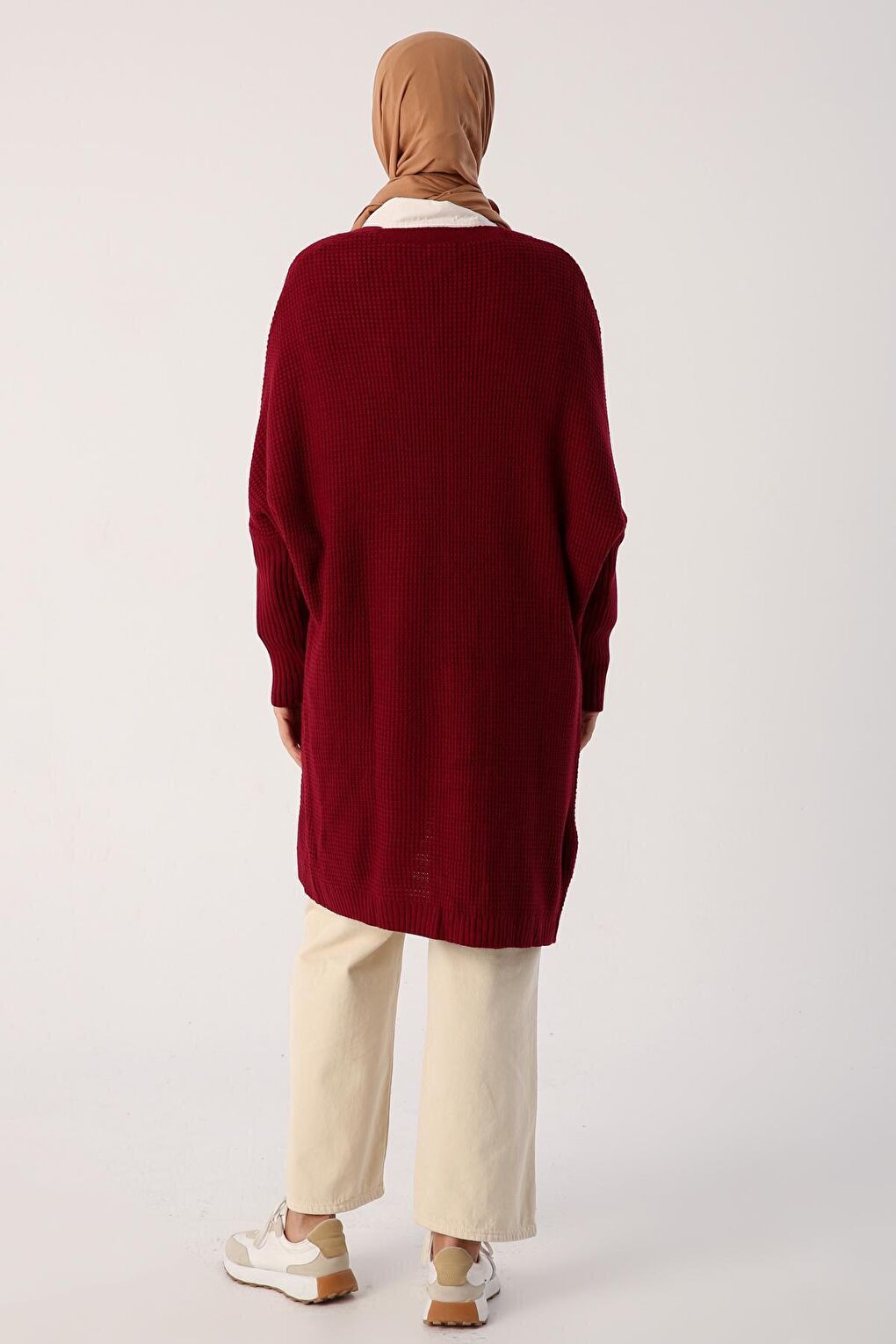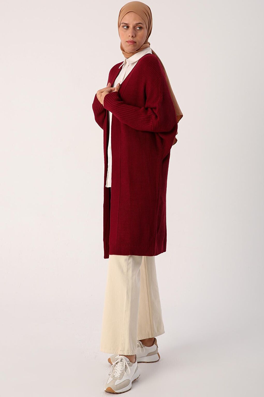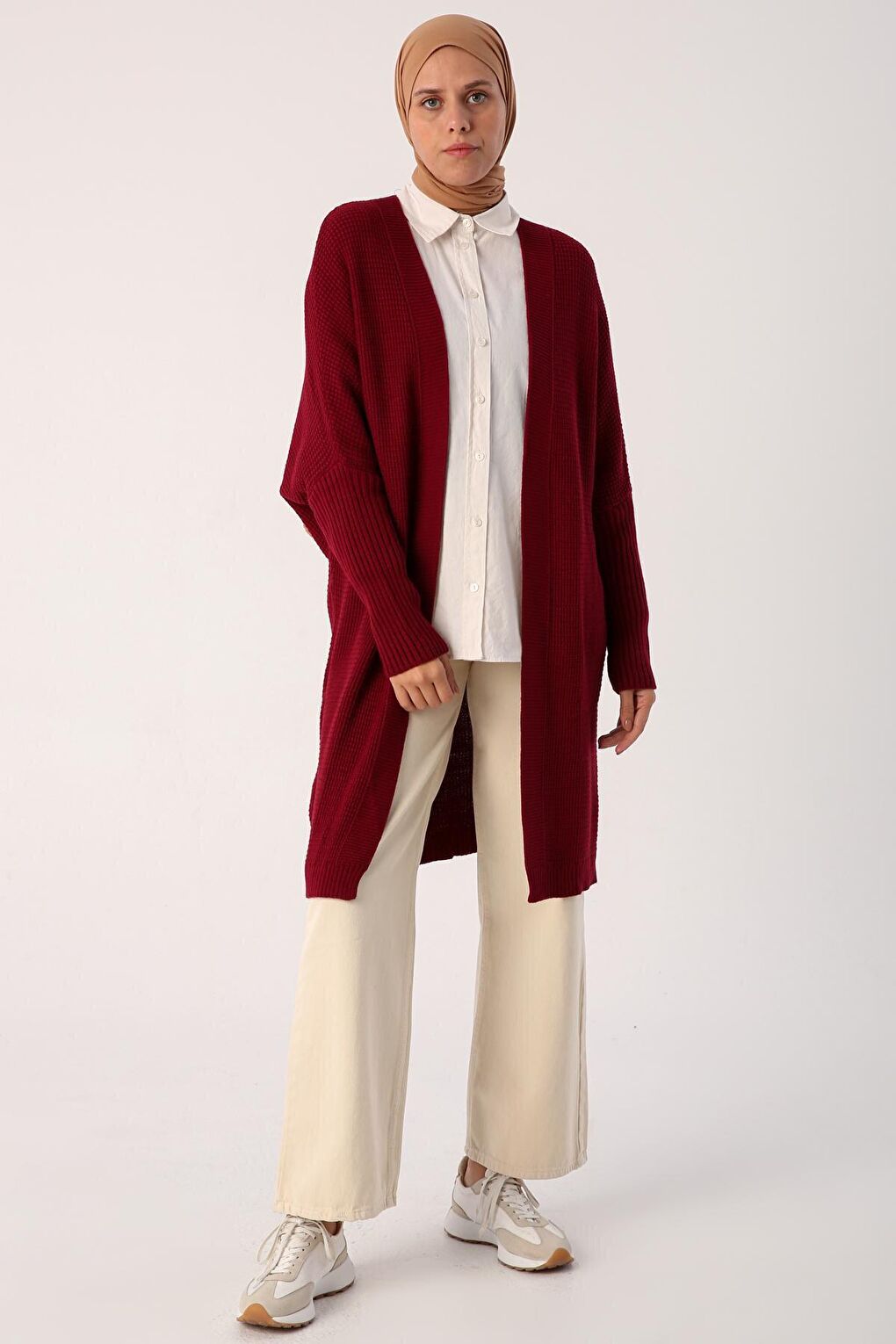 - نام : Bordo Önü Açık T-Kol Triko Hırka