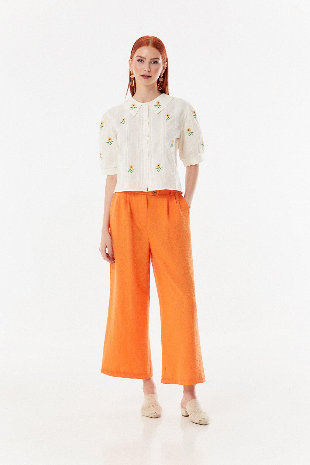 - نام : Arkası Lastikli Wide Leg Keten Pantolon