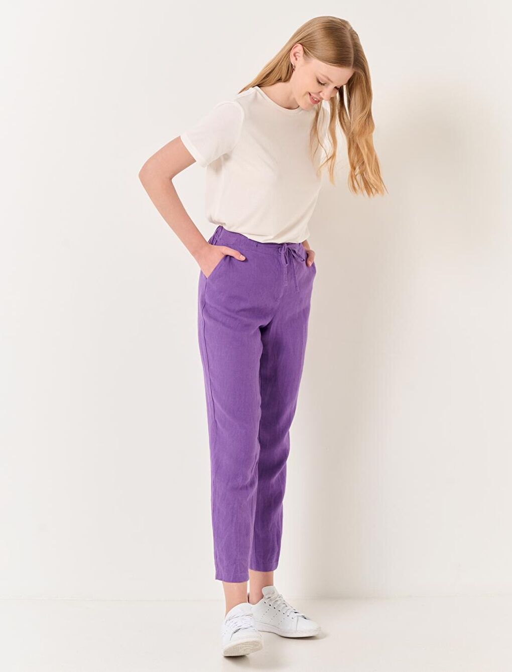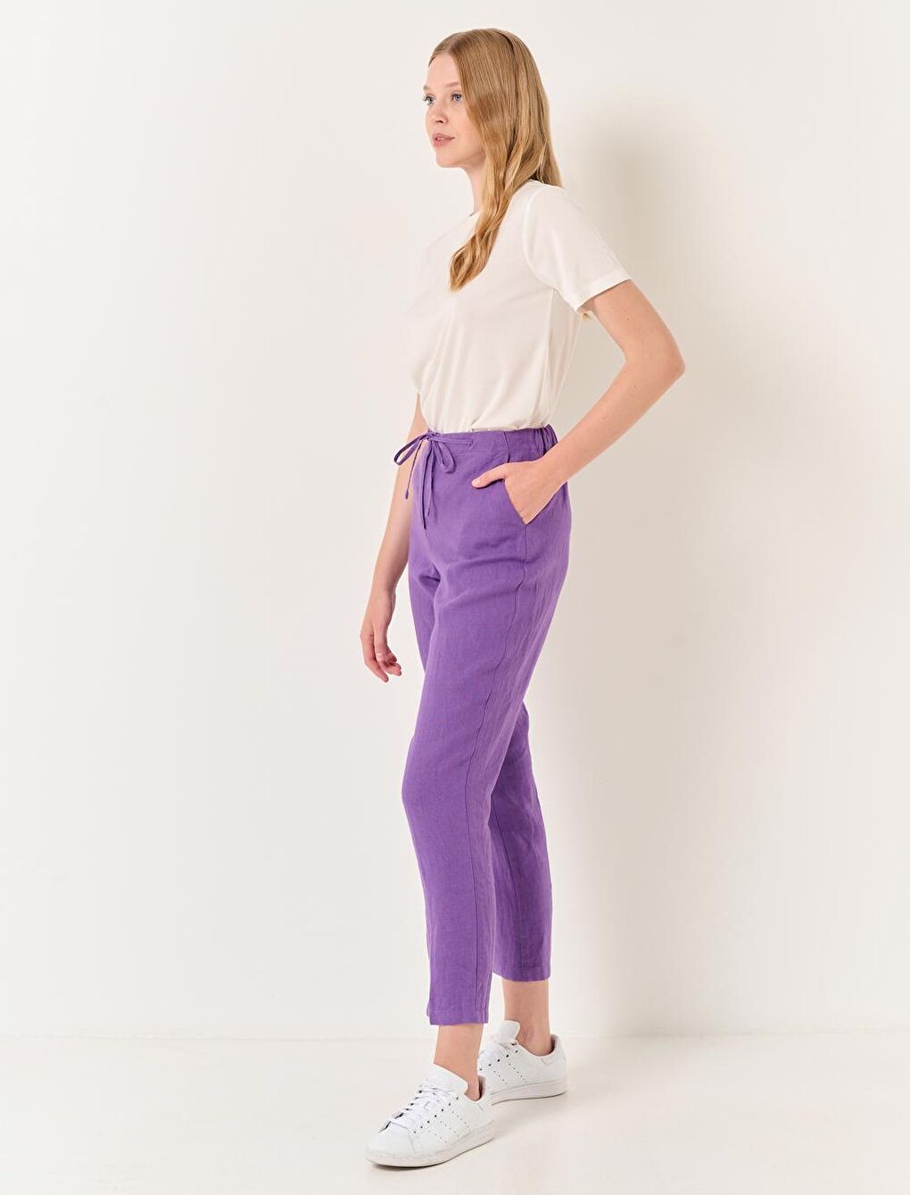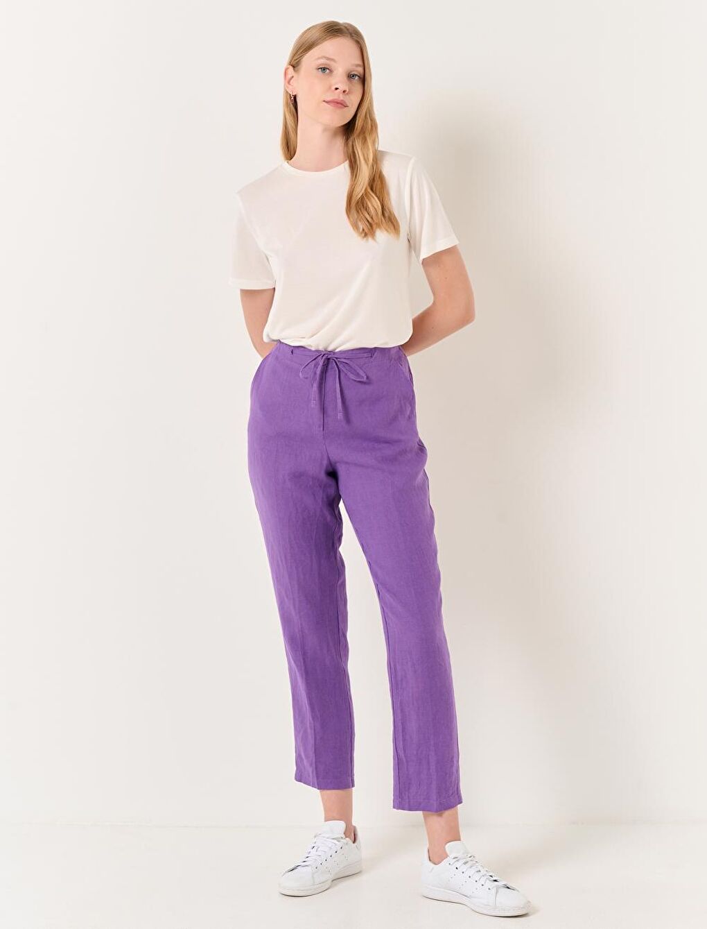 - نام : Mor Normal Paça Normal Bel Dokuma Keten Pantolon