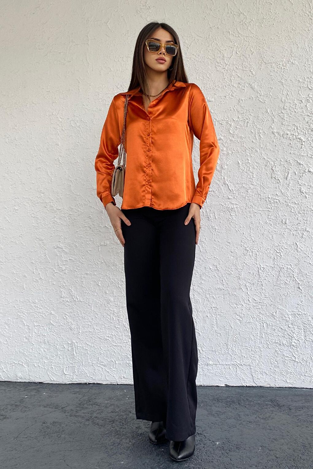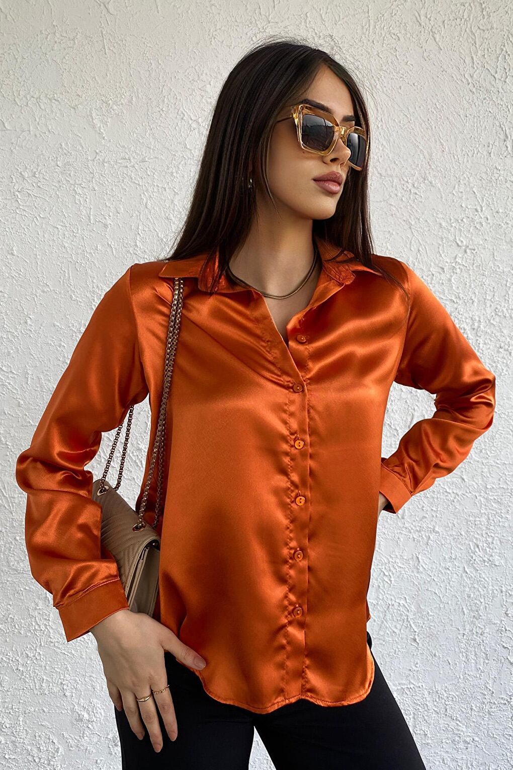 - نام : Kadın Turuncu Dökümlü Viskon Basic Saten Gömlek