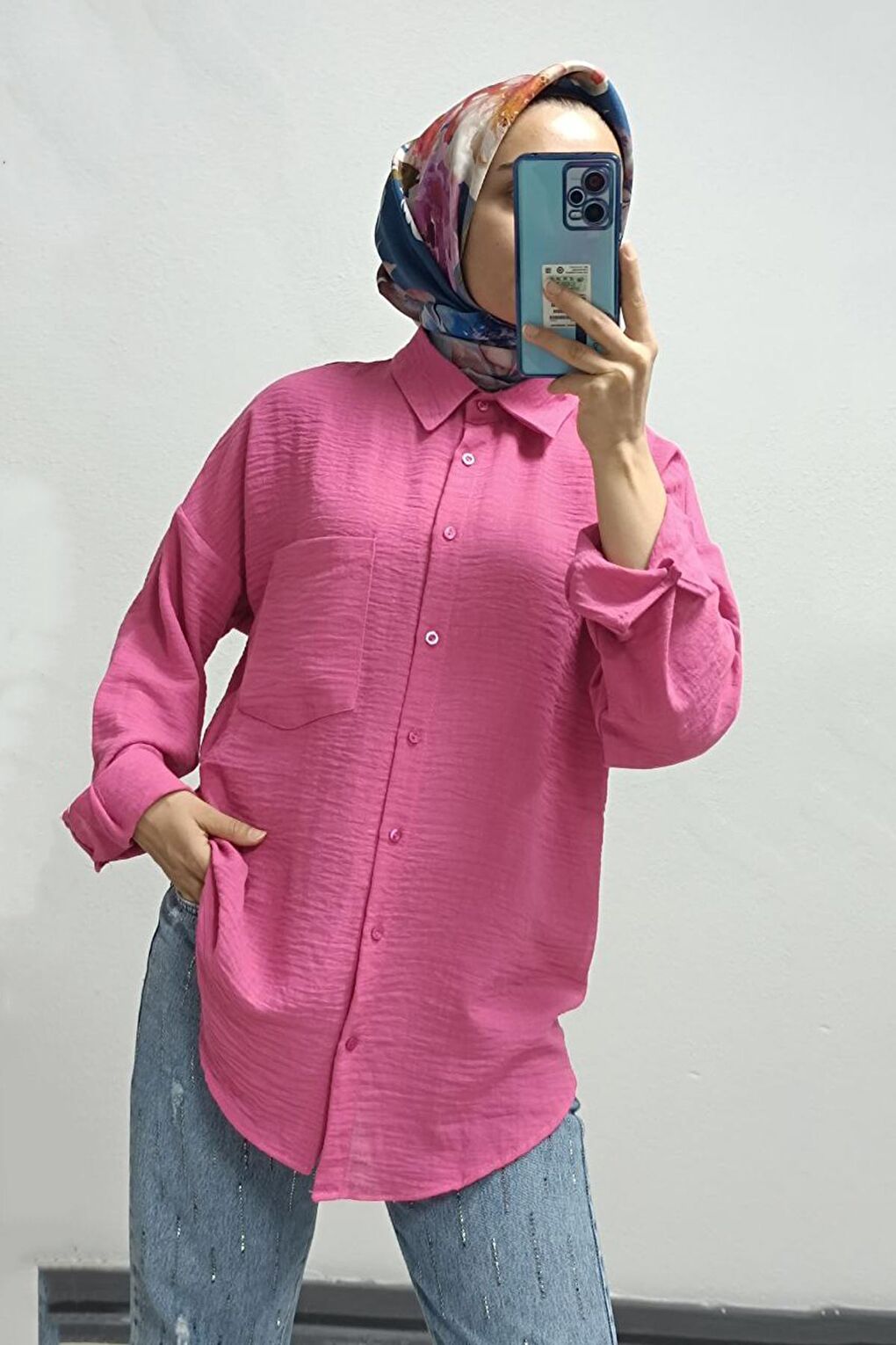 - نام : Kadın Pembe Düşük Omuz Cepli Oversize Gömlek