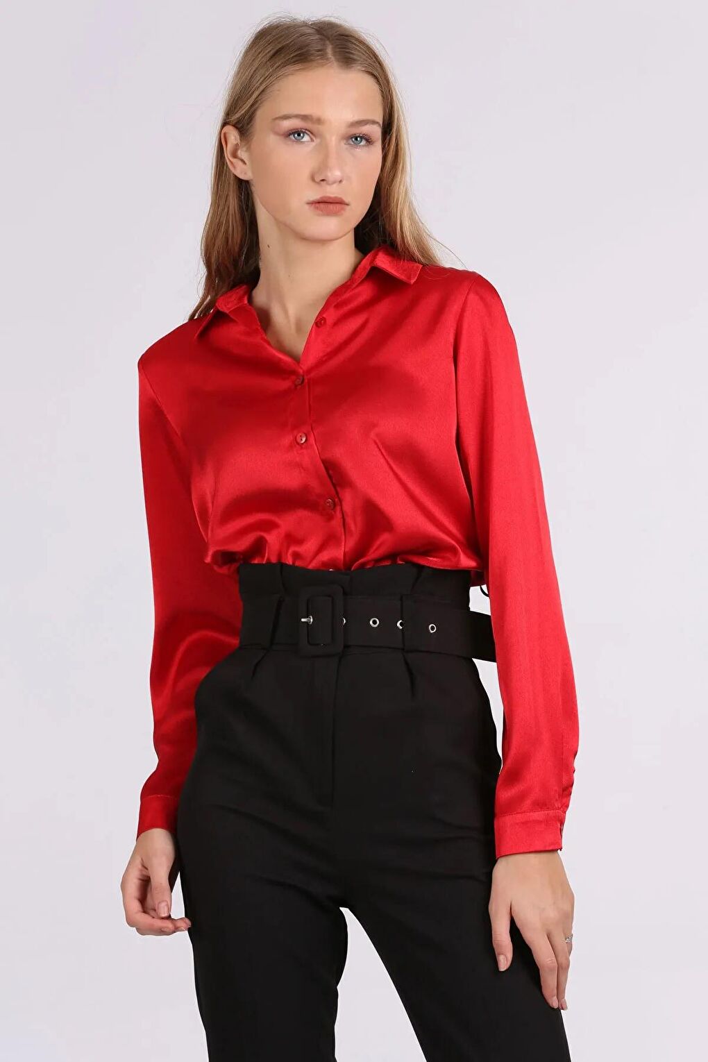 - نام : Kadın Kırmızı Dökümlü Viskon Basic Saten Gömlek