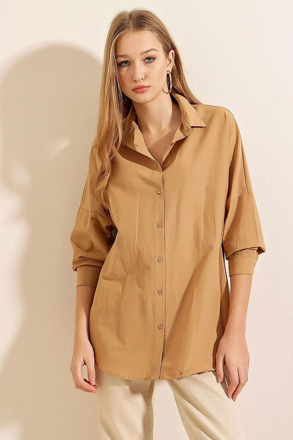 - نام : Kadın Camel Sade Düz Araboy Basic Oversize Gömlek